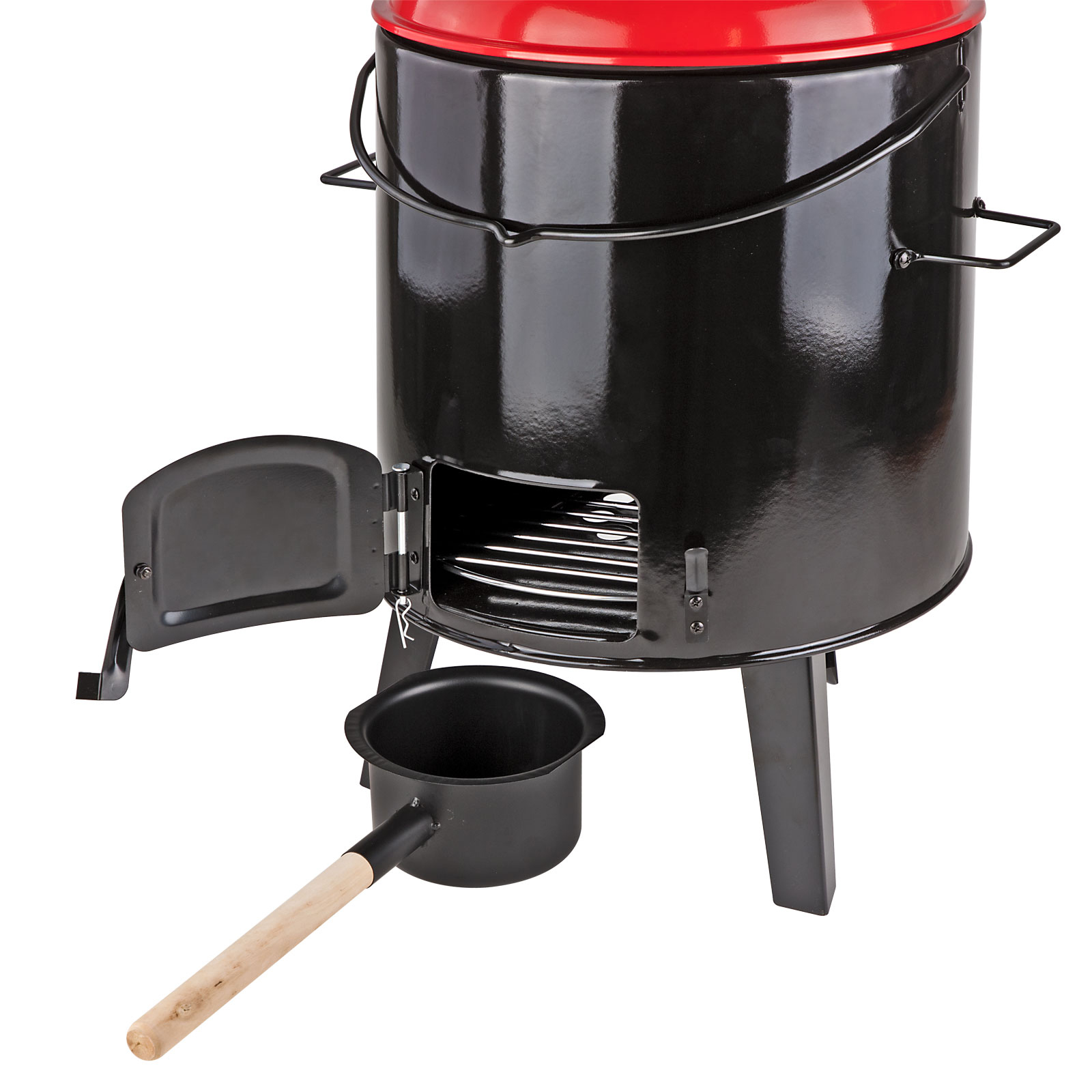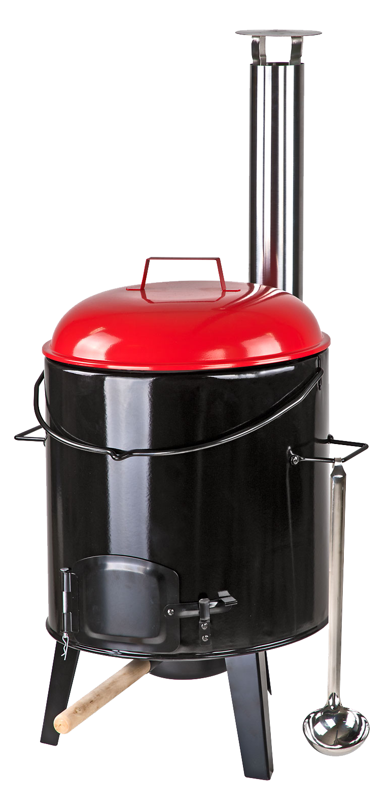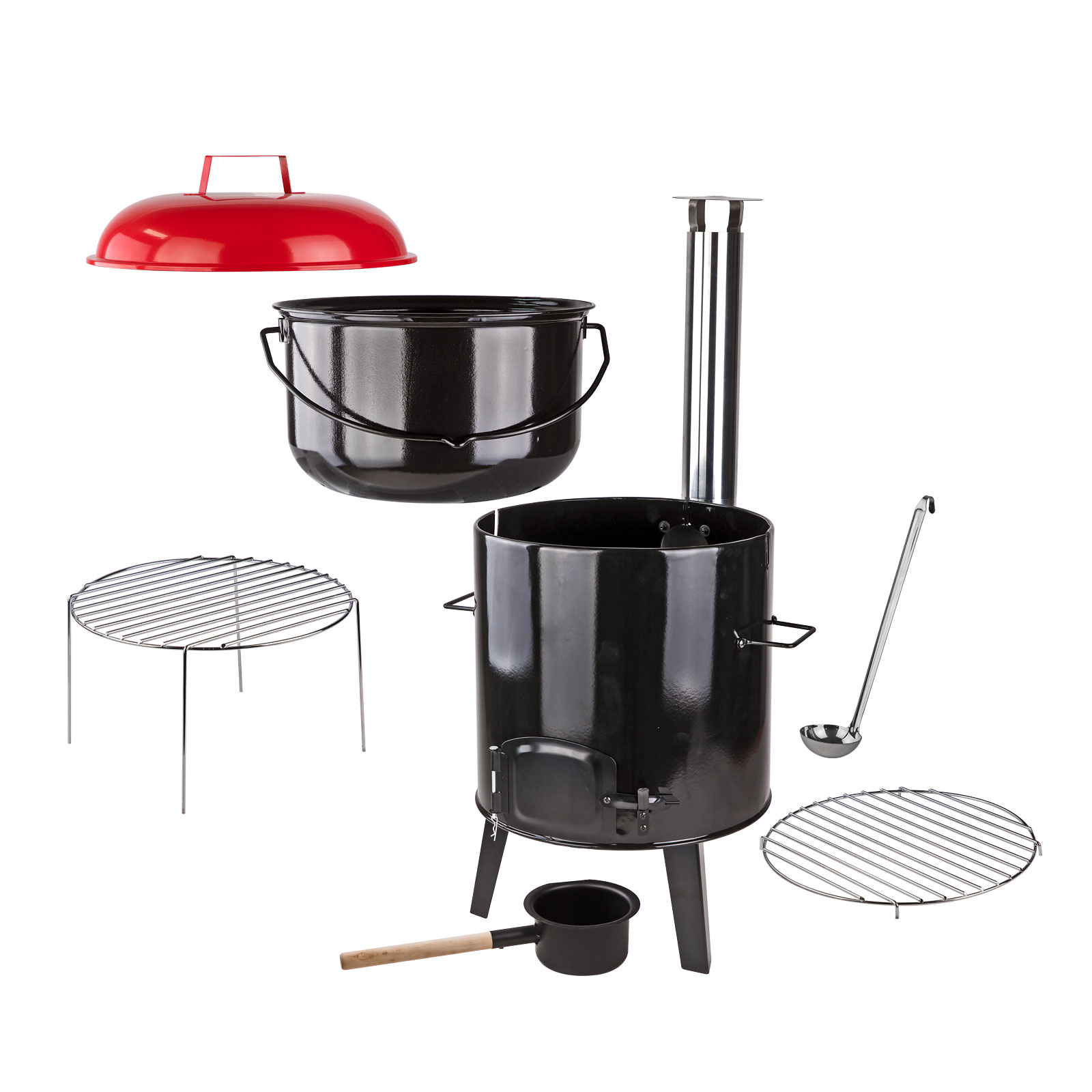 Rauchableitung und einfache Bedienung: Durch das montierte Ofenrohr wird der Rauch nach oben abgeleitet, sodass der Koch nicht belästigt wird. Der Zug ist einstellbar, um die Leistung zu drosseln. Ein Aschekasten sorgt für eine saubere Lösung.Großzügiges Fassungsvermögen: Der Kessel bietet Platz für ca. 14 Liter. Ausreichend für größere Gruppen oder Familien.Mobil und praktisch: Der Eintopfofen ist dank seiner Höhe von 92 cm (mit Rauchrohr ca. 120 cm), einer Breite von 45 cm und einer Tiefe von 50 cm mobil einsetzbar. Ob im Garten, auf dem Campingplatz oder bei Outdoor-Veranstaltungen – er begleitet Sie überall.Stabile Form und hochwertige Verarbeitung: Der Korpus aus stabil gekantetem Stahl sorgt für Stabilität. Die Nieten, Schrauben und Scharniere sind sorgfältig verarbeitet und gewährleisten eine lange Haltbarkeit.Ausstattung:Tolles, nostalgisches Design Korpus, Topf und Deckel emailliert, leichte Reinigung, befeuerbar durch separate Tür direkt unterm Kessel, separat abnehmbarer Aschekasten, Holz-/Kohlerost herausnehmbar, Grillrost verchromt, Edelstahlkamin mit Abdeckhaube, seitliche Griffe, Schöpfkelle aus Edelstahl,Lieferung erfolgt zerlegtTechnische Daten:Kesselinhalt: Ca. 14 Liter Topf LxH: Ø 33 x 21 cm,Rauchrohr: Ø 7,6 cm, Holz-Kohlerost ØxH: ca. 32,5x2,4 cm,Grillrost ØxH: ca. 32,5x19,5 cm,Gesamtabmessungen BxTxH: 45x50x92 cmGewicht: 10,18 kg