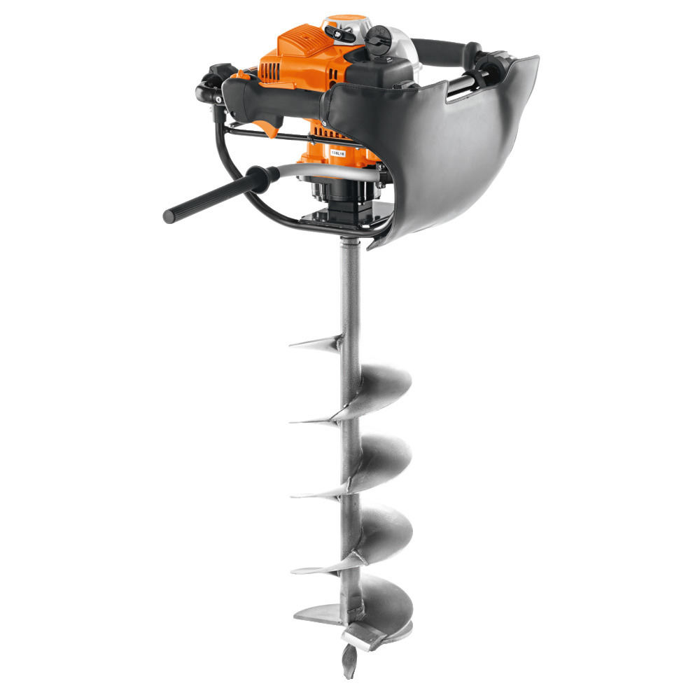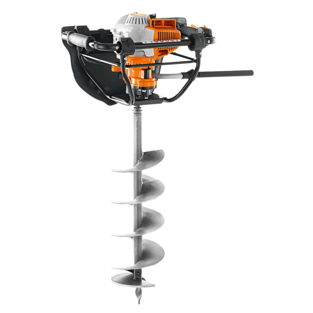 Komfortables Einmann-Bohrgerät zum Bohren von Erdlöchern bis 300 mm Durchmesser. Durchzugsstarker STIHL 4-MIX®-2-Takt-Motor mit niedrigen Emissionswerten. Vibrationsgedämpfter Griffrahmen und QuickStop-Bohrerbremse, die bei Verhaken des Bohrers am Oberschenkel des Benutzers ausgelöst wird und das Bohrwerkzeug sofort zum Stillstand bringt. Für vielfältige Aufgaben vom Bohren einfacher Erdlöcher bis zur Entnahme von Bodenproben. Reichhaltige Auswahl an Bohrwerkzeugen. Preis ohne Bohrwerkzeug.Technische Daten:Hubraum cm³: 36,3Leistung kW/PS:1,4/1,9Gewicht kg:9,9Schalldruckpegel dB(A):92Vibrationswert links/rechts m/s²: 1,7/2,2Spindeldrehzahl 1/min:200