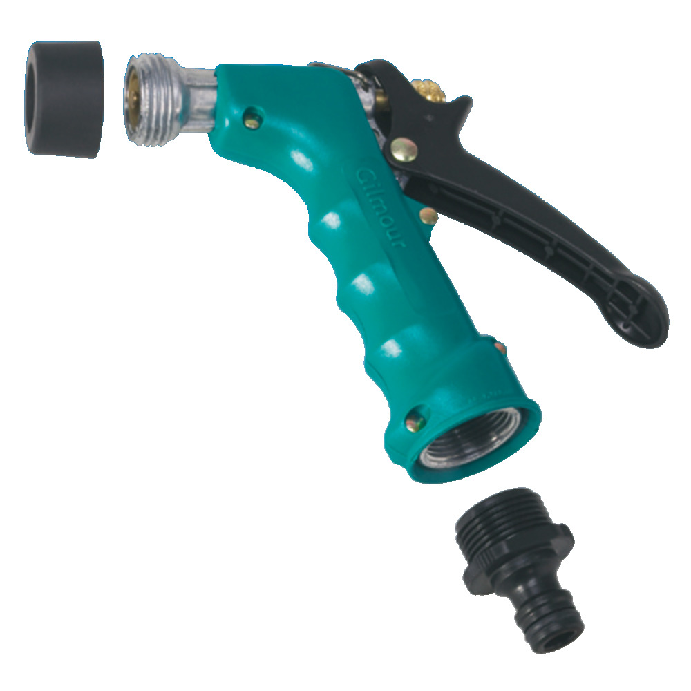 Die Euterbrause Gilmour kann mit heißem als auch mit kaltem Wasser genutzt werden. Sie hat eine selbstregulierende Antitropf-Dichtung und einen 1/2“ Schlauchanschluss. Die Gilmour Euterbrause hat ein Messingventil für Langlebigkeit und Zuverlässigkeit. Zusätzlich verfügt sie über einen verstellbaren Wasserstrahl und über eine Hebelfixierung zum Dauersprühen. Robuste Ausführung, mit Edelstahlfeder.