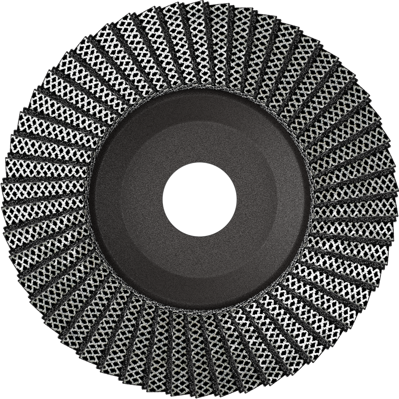 Diamantbestückte Fächerscheibe für das Bearbeiten von Fliesen, Keramik, Pflaster, Feinsteinzeug usw. Premium-Qualität für lange Lebensdauer und universellen Einsatz. Passend für jeden handelsüblichen Einhand-Winkelschleifer.