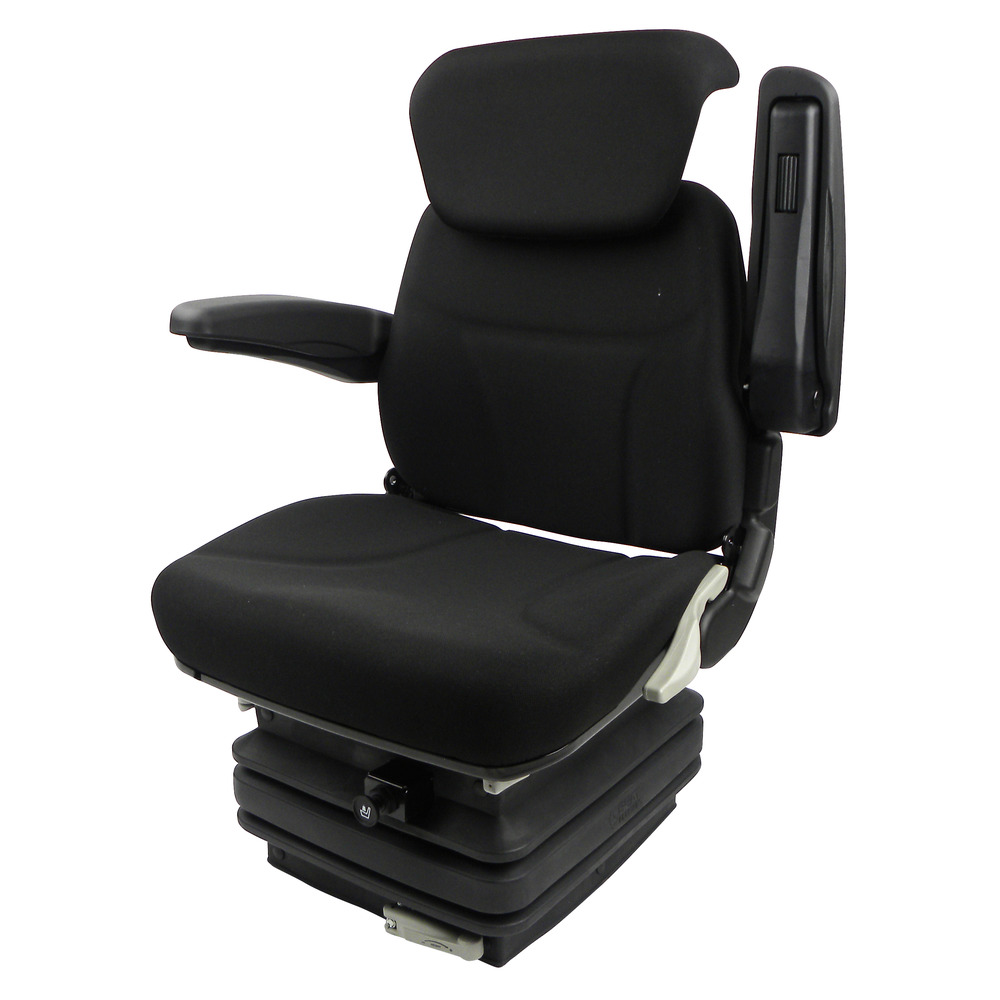 Mit Armlehnen, Rückenverlängerung und Horizontalfederung. Hochwertiger, ergonomischer Komfortsitz mit horizontaler Grundplatte, Kugellagerung, Velourstoff schwarz.