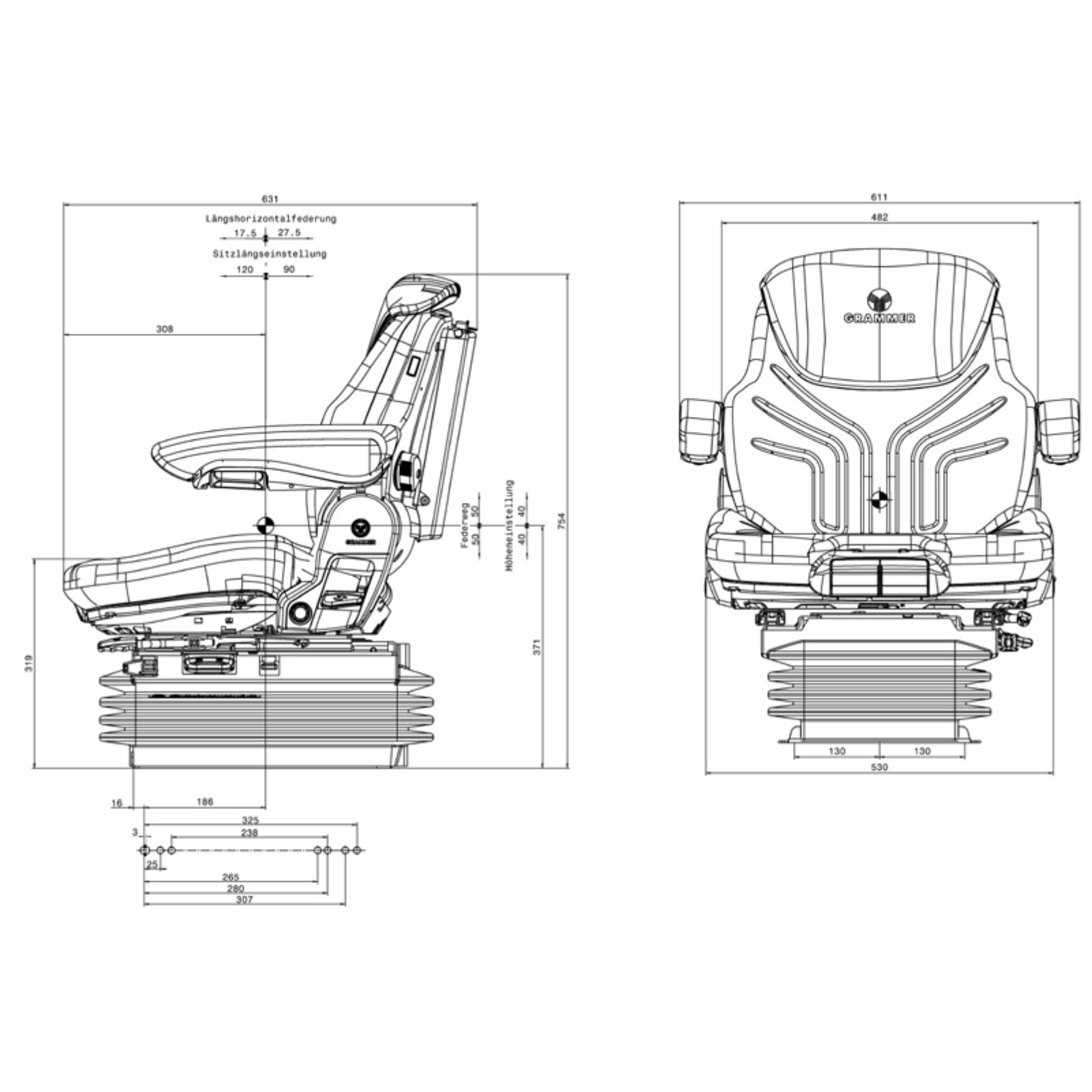 - Längs-Horizontalfederung, blockierbar