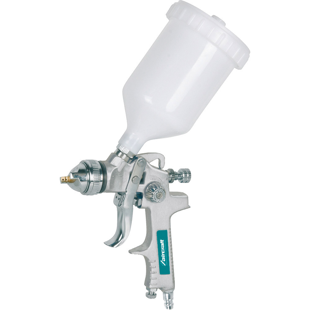 Hochwertige Lackierpistole mit stufenloser Farb- und Luftmengenregulierung. Kunststoffbecher (0,75 L) mit Tropfsperre, Düse 1,4 mm. Ideal für alle Lackierarbeiten.