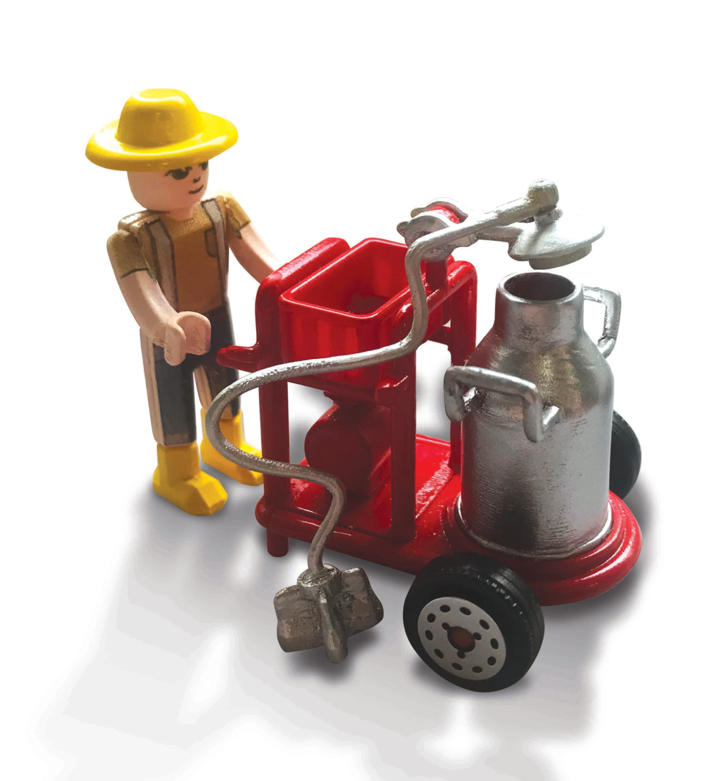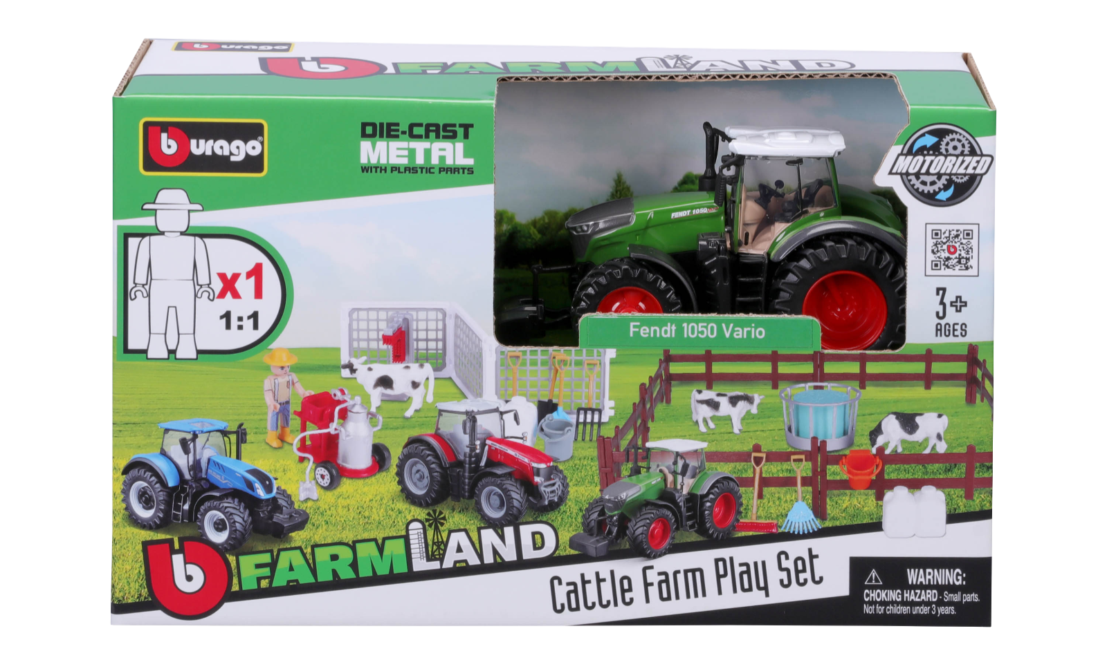 Mit dabei: ein detailgetreuer Fendt Traktor im Maßstab 1:43, zwei Kühe, ein Bauer mit Milchkanne,