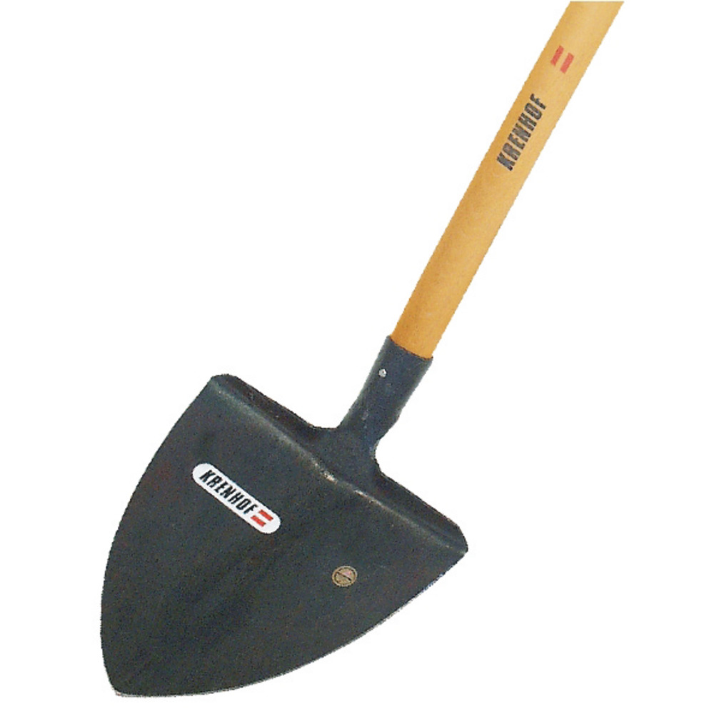 Fassschaufel, geschmiedet, spitz, ohne Feder, 1,2 kg, Schaufelblatt 27 x 28 cm (B x L) – Spezialhärtung. Inkl. montiertem Stiel in Esche 1300 mm Länge.