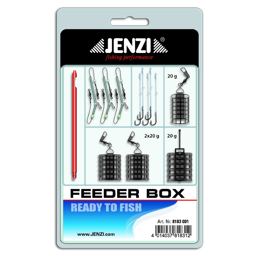Jenzi Feeder-Box. Perfekt für Einsteiger in das beliebte (und fängige!)Feeder- Angeln. Alles drin! 13-tlg.