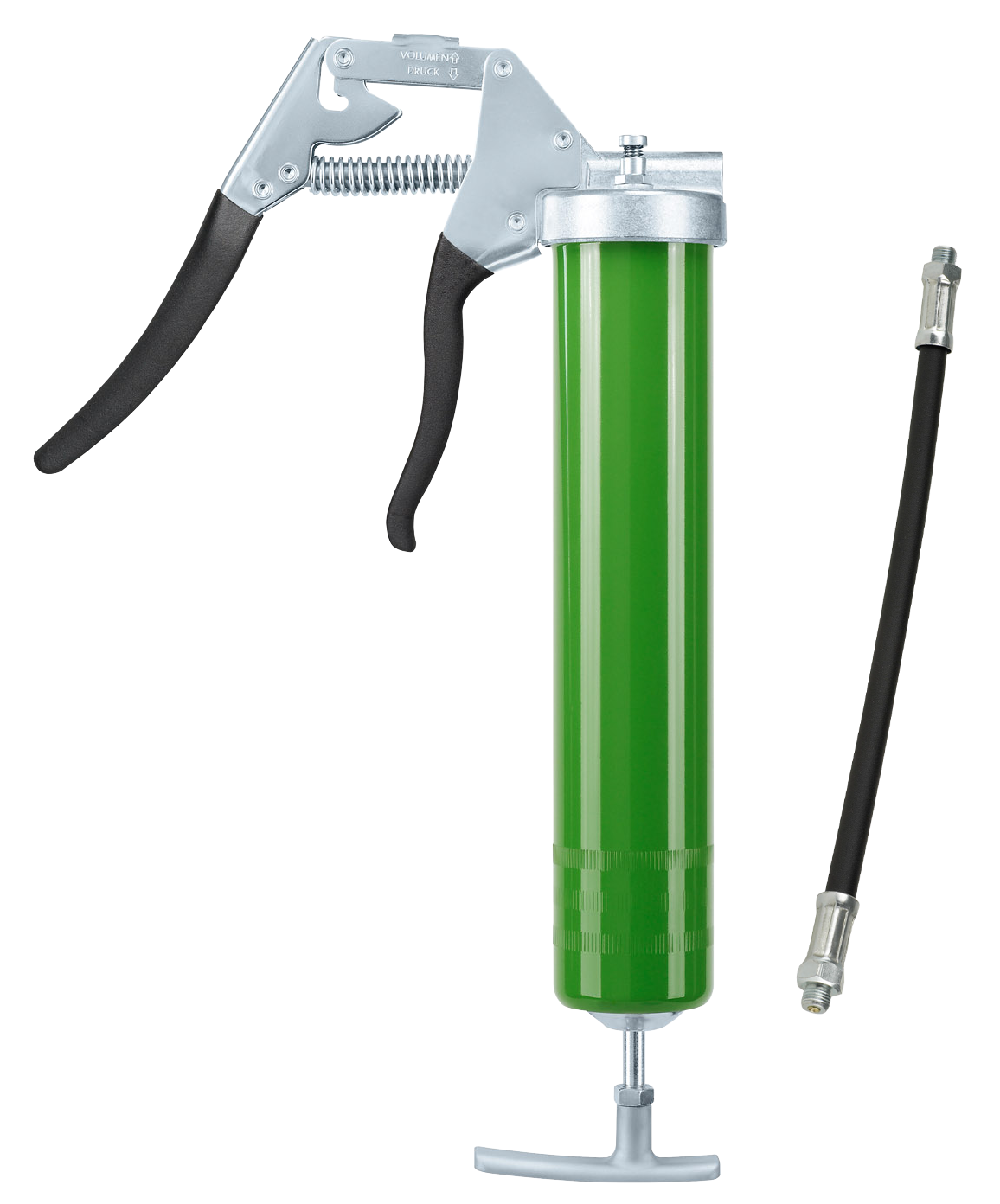 Pressol Einhandfettpresse mit Entlüftungsventil.Massiver Zinkdruckgusskopf mit umstellbaren Einhandgriff - für hohes Volumen oder hohen Druck bei schwierigen Anwendungen.Die Presse ist für die Verwendung von400 g Fettkartuschen, losen Fett oder für die Befüllung mit eine Fettfüllgerät geeignet.Komplett - Set inkl. Panzerschlauch 300 mm und Präzisionsmundstück.