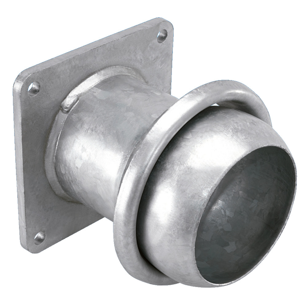 Flanschkupplung mit Kugel und Ring in verzinkter Ausführung. Flanschanschluss Lochbild, 150 x 150 mm.