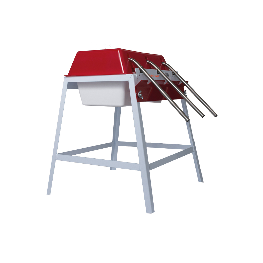 Mit Schwimmerventil das den Zulauf automatisch regelt. Behälterinhalt ca. 5 Liter, Füllrohr-Ø 12 mm, Schlauchanschluss 3/4″. Tischmodell zum dosierten Abfüllen vom Most, Wein, Fruchtsäften usw. Für Sirup nicht geeignet. BxHxT: 38 x 50 x 45 cm.
