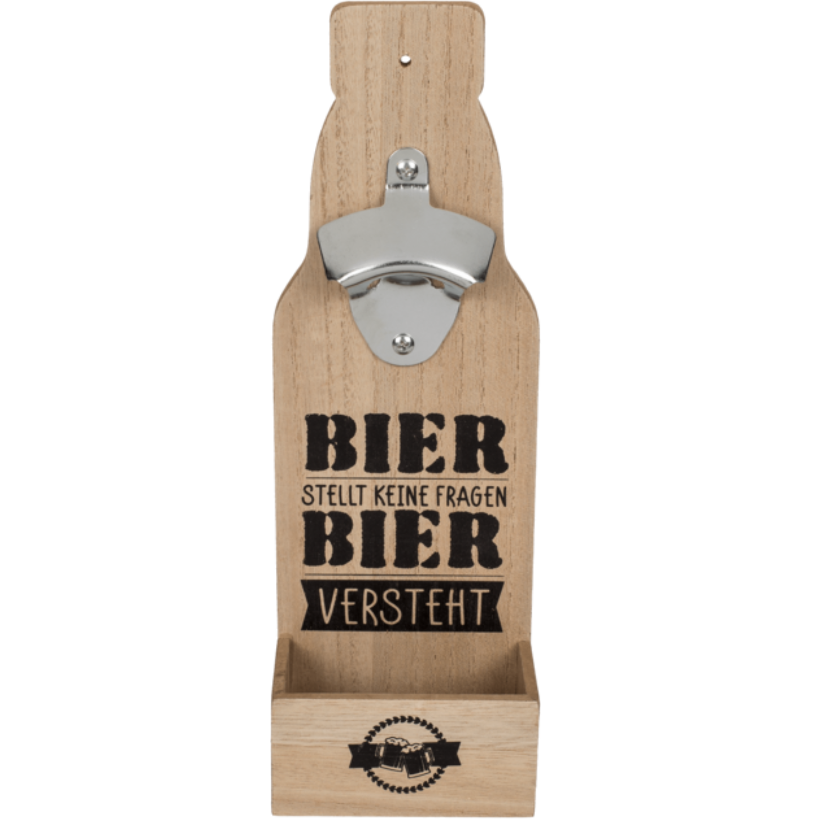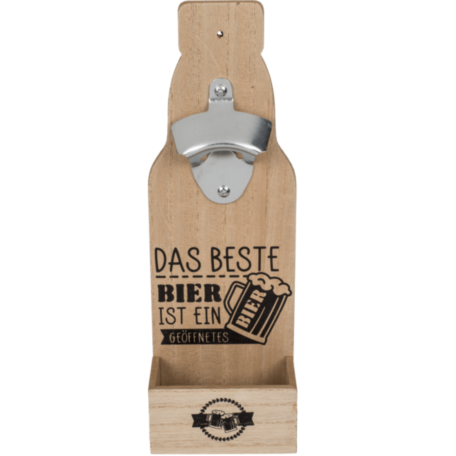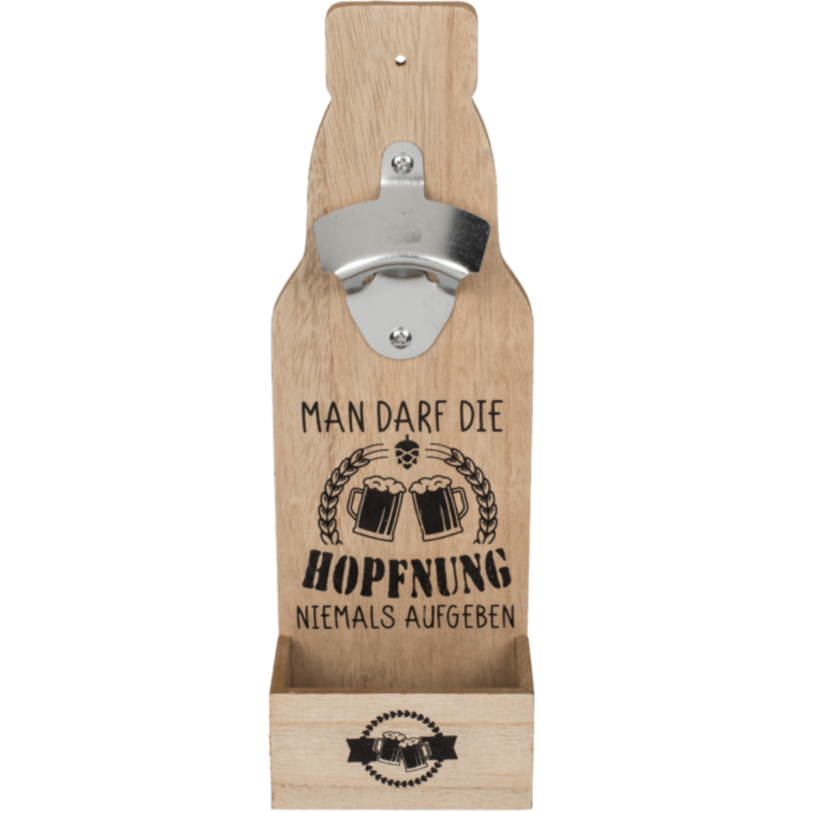 Der Flaschenöffner aus Metall auf Holzbrett ist ein praktisches und stilvolles Accessoire für deine Küche, Bar oder Terrasse.3-fach sortiert, Motiv nicht frei wählbar!Dank der robusten Metallkonstruktion lassen sich Flaschen mühelos öffnen, während das natürliche Holzbrett für einen rustikalen Look sorgt.Ob für den täglichen Gebrauch oder als Hingucker bei der nächsten Party – dieser Wandflaschenöffner kombiniertFunktionalität mit modernem Design.Einfach an der Wand montieren und immer griffbereit, wenn der Durst ruft! Perfekt als Geschenk für Bierliebhaber oder für dein eigenes Zuhause.Auffangebehälter für Kronkorkeninkl. Befestigungsmaterial3-fach sortiert - Spruch nicht frei wählbarMaße: ca. 30 x 10 cm