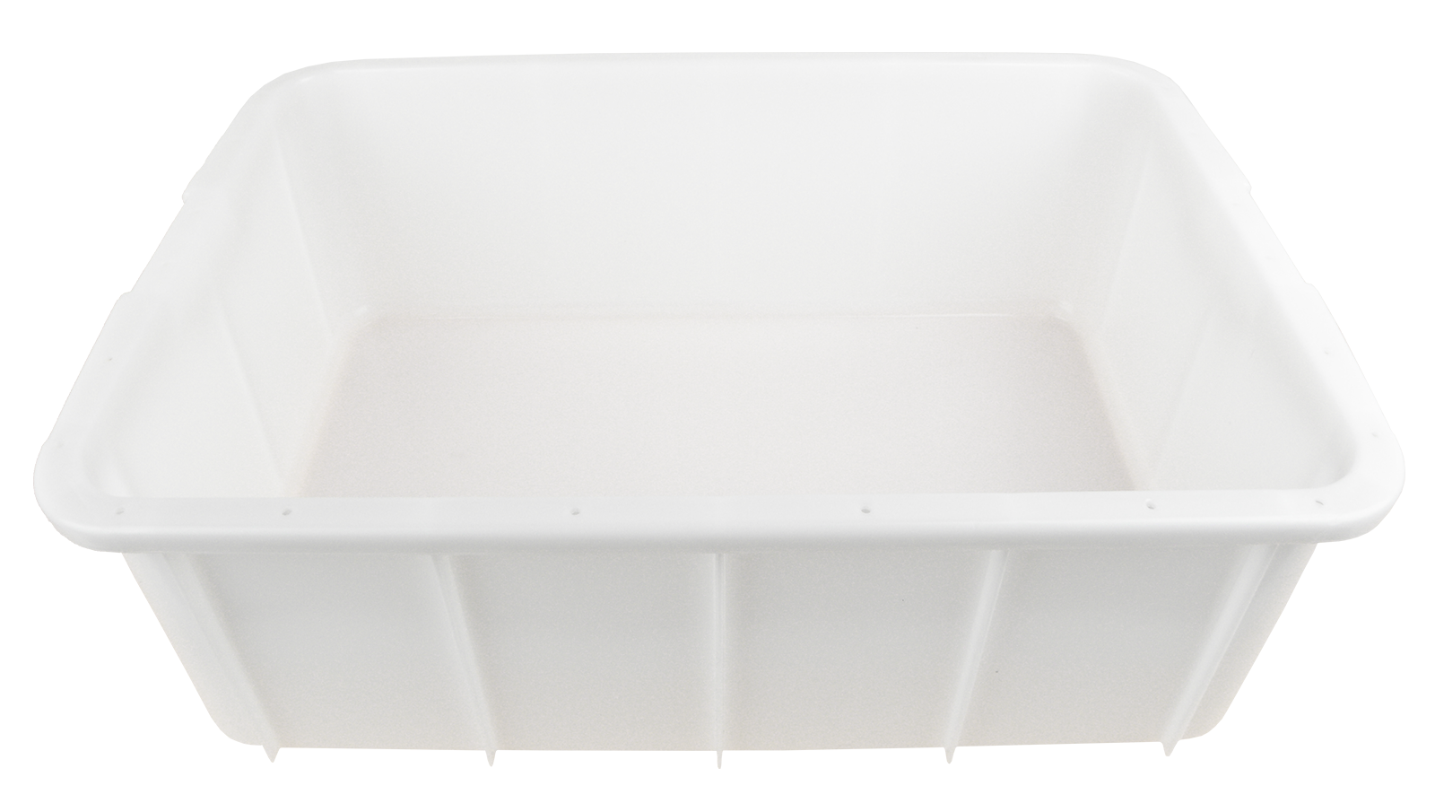 Aus starkem, lebensmittelechtem Kunststoff (HD-PE). Stapelbar. Inhalt 50 LiterMaße Außen: 66x45x22,5 cmMaße Innen: 60,2x40,8x22,1 cm