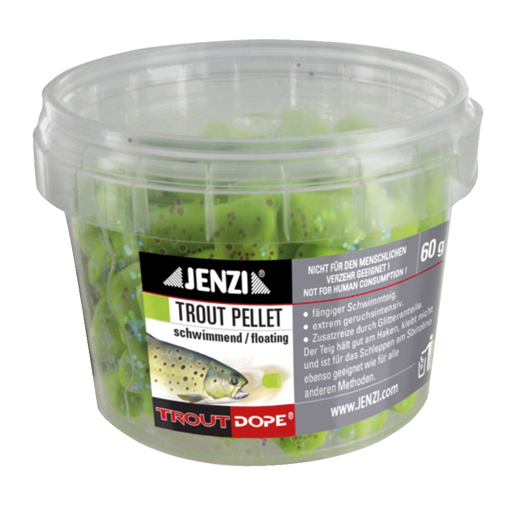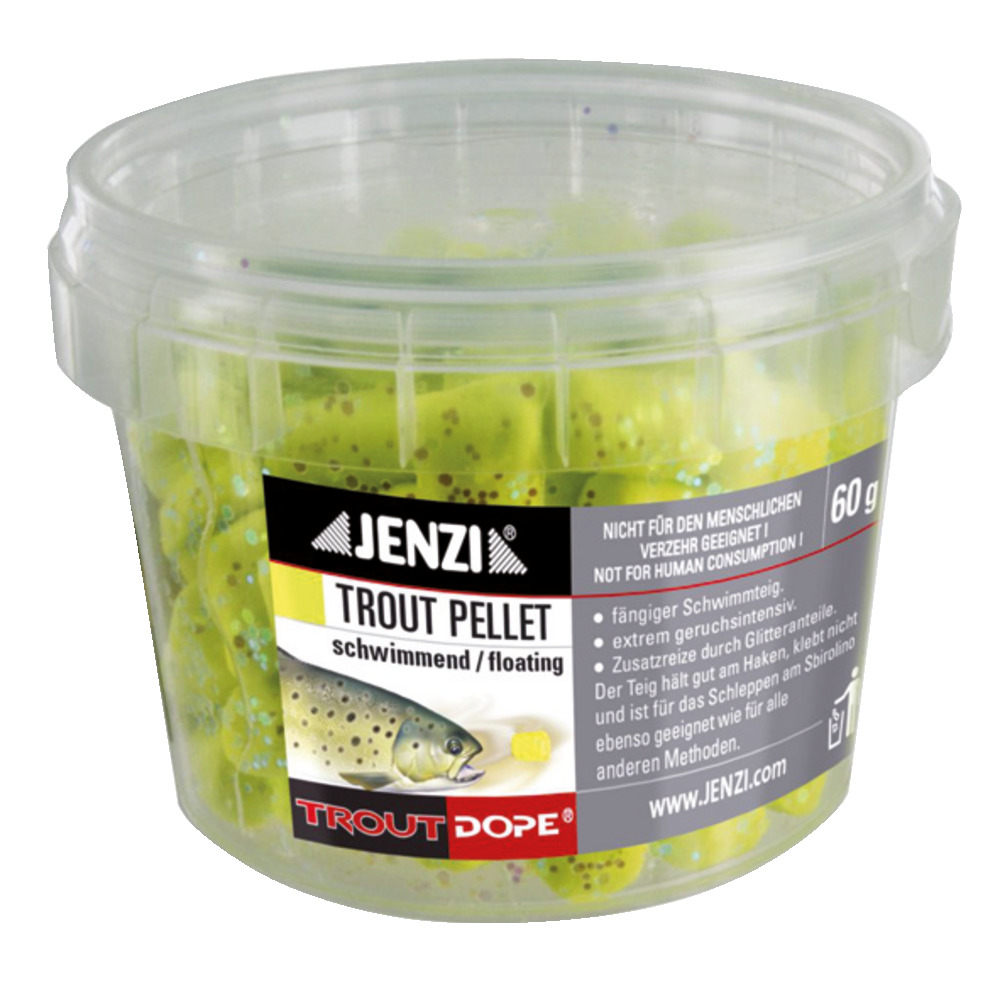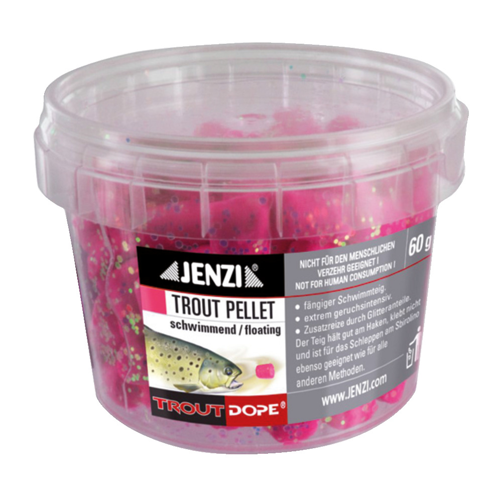 Ein absoluter Erfolgsköder - Die Trout Pellets haben eine Länge von ca. 1,5 cm – und sind aus einem vorgekneteten Forellenteig. Der spezielle Teig schmiert nicht, klebt nicht und hält extrem gut bei weiten Würfen oder beim Schleppen am Haken. Der starke Geruch sowie der Glitteranteil machen die Pellets zu einem absoluten „Trout-Magnet“.