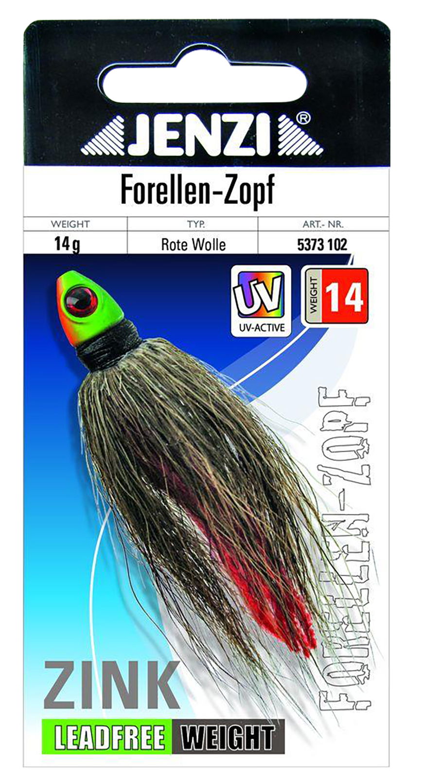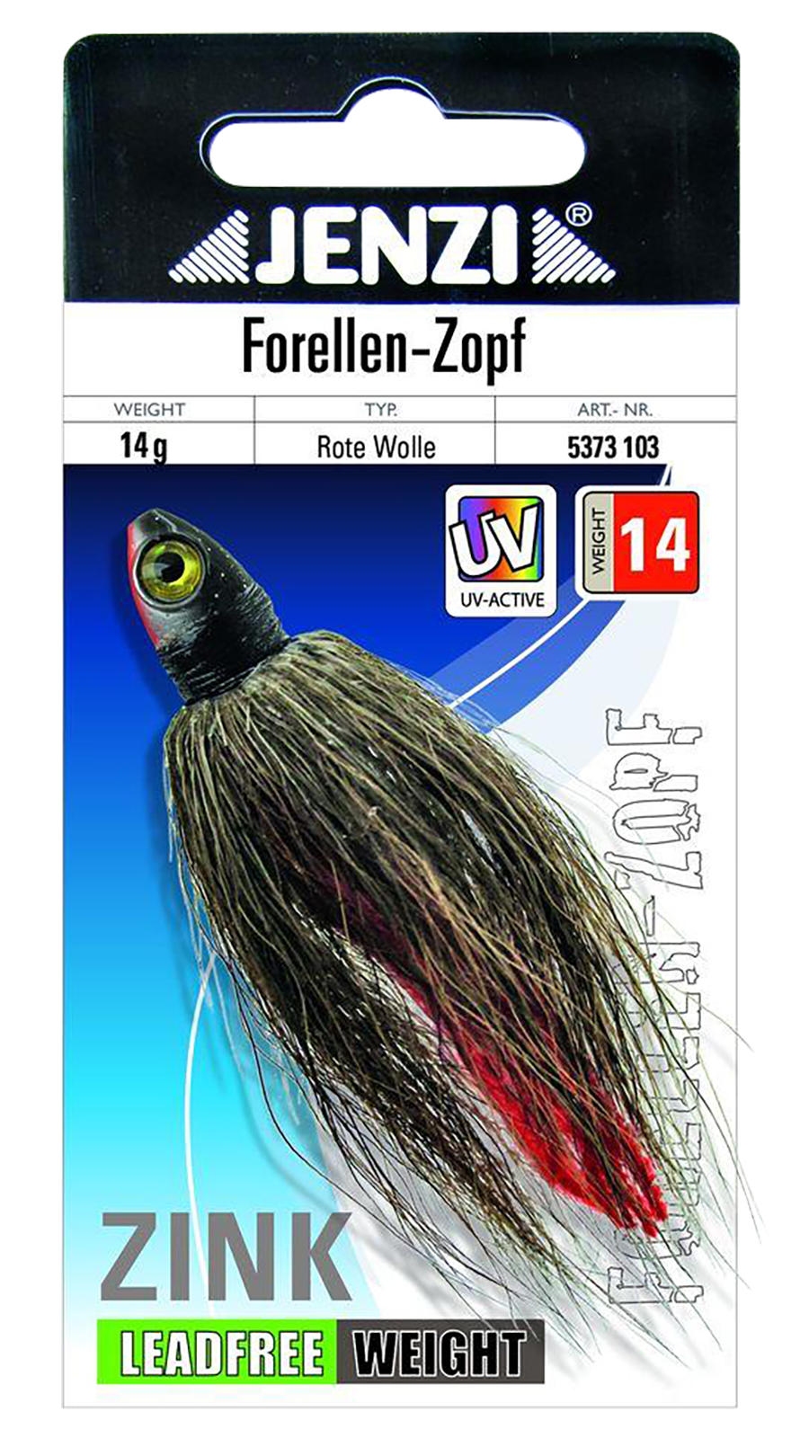 Gefertigt aus hochwertigem Zink – ganz ohne Blei. Diese altbewährte Spezialität eignet sich perfekt zum Fang von Forellen in klaren Gebirgsbächen und Seen. Der Zopf wird von Hand gebunden, mit feinem Rehhaar und einem roten Wollstreifen für extra Lockwirkung.
