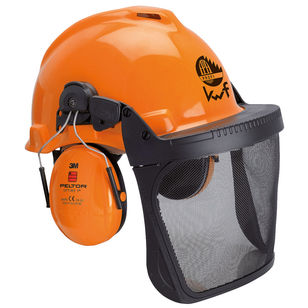 Hoher Tragekomfort durch Belüftungsöffnungen. Kopfband mit Schweißband aus weichem Leder und komfortablem Dreh - Ratschensystem, höhen- und seitenverstellbaren Gehörschutz, der trotz niedrigen Drucks äußerst geräuschdämpfend ist. Dämmwert von SNR = 28 dB(A). Netzvisier aus leichtem und robustem Polyamid.