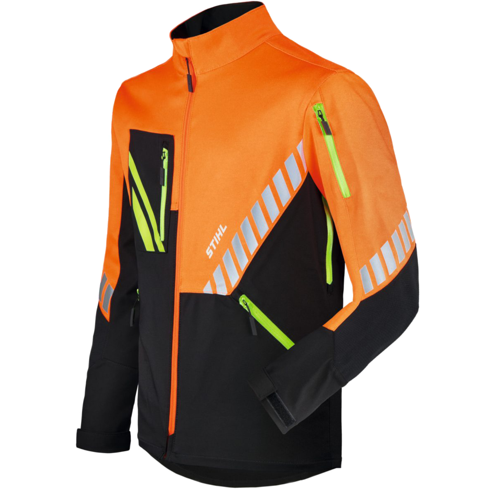 Leichte, sehr angenehm zu tragende, wasserabweisende und atmungsaktive Arbeitsjacke für das ganze Jahr.Funktioneller Materialmix, der sowohl aus robusten aber auch flexiblen Stoffen besteht,für viel Bewegungsfreiheit, angenehmes Körperklima und einer langen Lebensdauer.Gute Sichtbarkeit durch großen Warnorangeanteil und reflektierende Details.Für den Einsatz im Forst, in der Landwirtschaft und im Garten- und Landschaftsbau.Ausstattung:Vor Unterkühlung im Nierenbereich schützt ein verlängertes Rückenteil.Der vorgeformte, verstärkte Ellenbogenbereich ist wasserdicht durch eine atmungsaktive Membran und vereint eine hohe Beweglichkeit mit einem Dornen- und Abriebschutz.Praktisch ist auch die per Klettverschluss einstellbare Ärmelweite.In der Brusttasche, den 2 Seitentaschen und der Ärmeltasche, jeweils mit Reißverschluss, und der Innentasche haben Sie ausreichend Stauraum,um beispielsweise Ihr Smartphone mitzuführen.Ein mitgelieferter Erste-Hilfe-Reißverschluss-Anhänger kann individuell an der Tasche positioniert werden, in der das Notfall-Set aufbewahrt wird.Material:Oberstoff: Schwarz (93 % Polyamid, 7 % Polyurethan), Warnorange (92 % Polyester, 8 % Elasthan)Futter: 100 % PolyesterGr. M - XXL