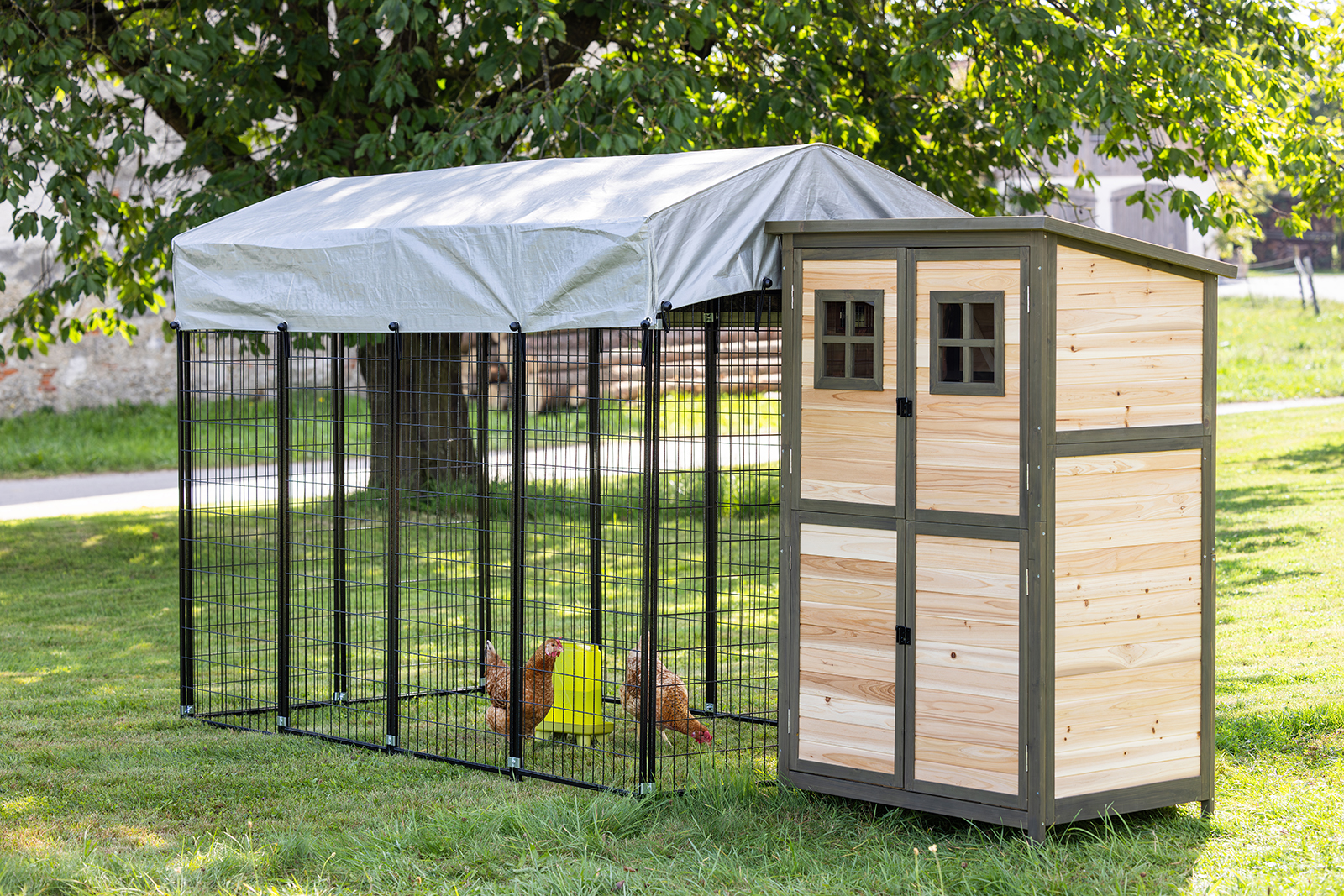 • bietet Hühnern viel Platz zum Scharren, Picken und Bewegen