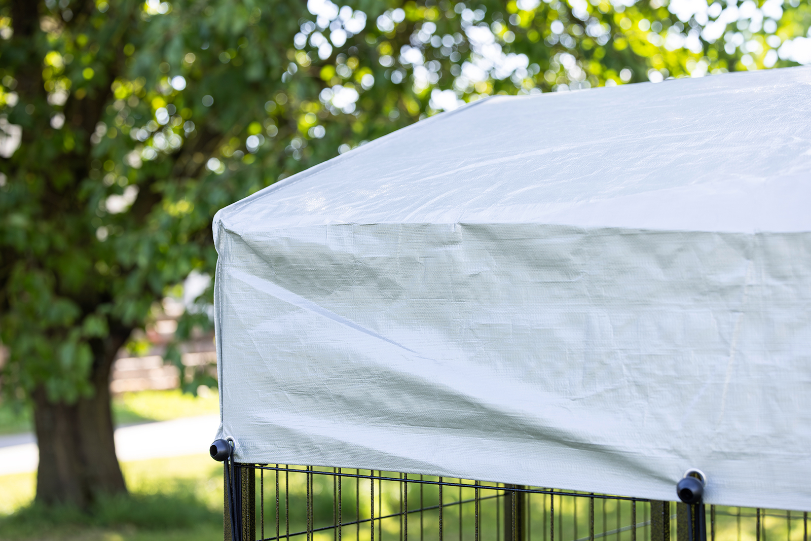 • komplette Überdachung des Geheges sorgt für ausreichend Schatten und Schutz vor Regen