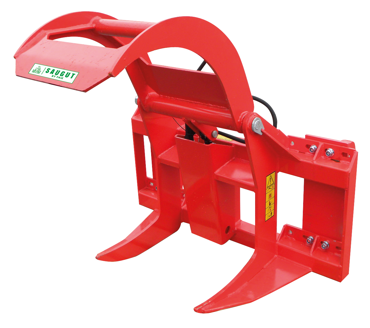 Extrem starkes und stabiles SAUGUT Polterschild mit hydraulischem Obergreifer. Umfangreiche Einsatzmöglichkeiten durch die große Öffnungsweite, den gebogenen Greifarm und die langen konischen Hörner.