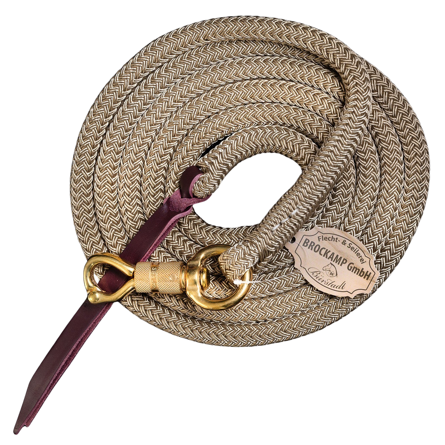 Ausgestattet mit einem robusten Messing-BullSnap-Drehsicherheitskarabiner sowie einer Lederklatsche am Seilende – ideal für professionelles Horse-Man-Ship Training.