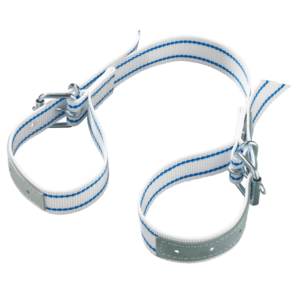 Aus Nylongurten mit Lederbesatz und Rollenschnallen.