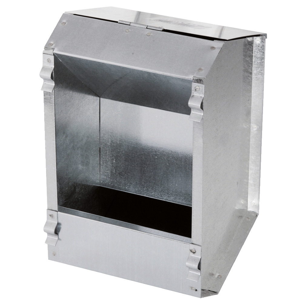 Verzinkter Futterautomat für Kaninchen. Mit gelochtem, abgerundetem Boden sowie Deckel für staubfreies Futter. Der Automat ist von außen anzubringen und zu befüllen! Inhalt 2,2 l