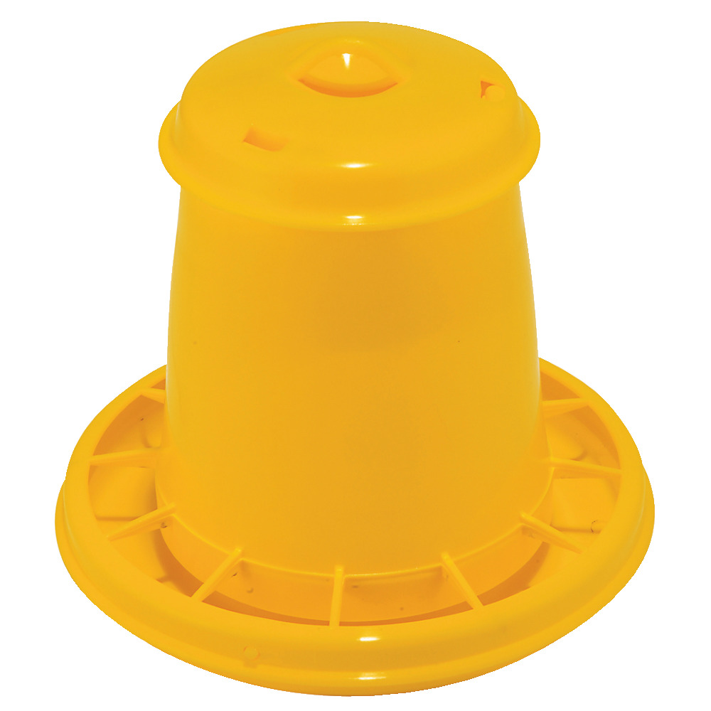 Futterautomat aus gelbem, lebensmittelechten Kunststoff.Wird unmontiert geliefert!
