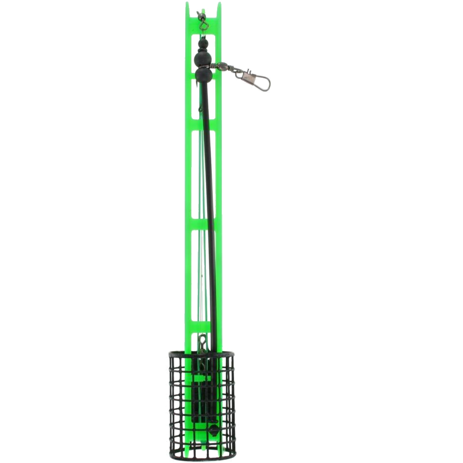 Feeder-/Futterkorb Komplett-Montage – Ready-to-GoDiese fertig montierte Feeder-Montage ist ideal für alle, die ohne viel Aufwand direkt ans Wasser wollen.Einfach auspacken, an die Hauptschnur knoten – und los geht’s!Der stabile Futterkorb sorgt für eine präzise Futterplatzierung am Gewässergrund.Die Montage ist bereits komplett gebunden – mit einem hochwertigen Haken der Größe 8 und einer abriebfesten Vorfachschnur mit 0,22 mm Durchmesser.Das ist eine bewährte Kombination für den Fang von Brassen, Rotaugen oder kleineren Karpfen.Besonders praktisch: Die Komponenten sind aufeinander abgestimmt und für viele Angelsituationen geeignet – ob am Fluss oder Stillwasser.So sparen Sie sich das Basteln am Ufer und können sich ganz aufs Angeln konzentrieren.Ideal für Einsteiger und Profis, die eine verlässliche Lösung suchen.Hakengröße: 8Schnur: 0,22 mm