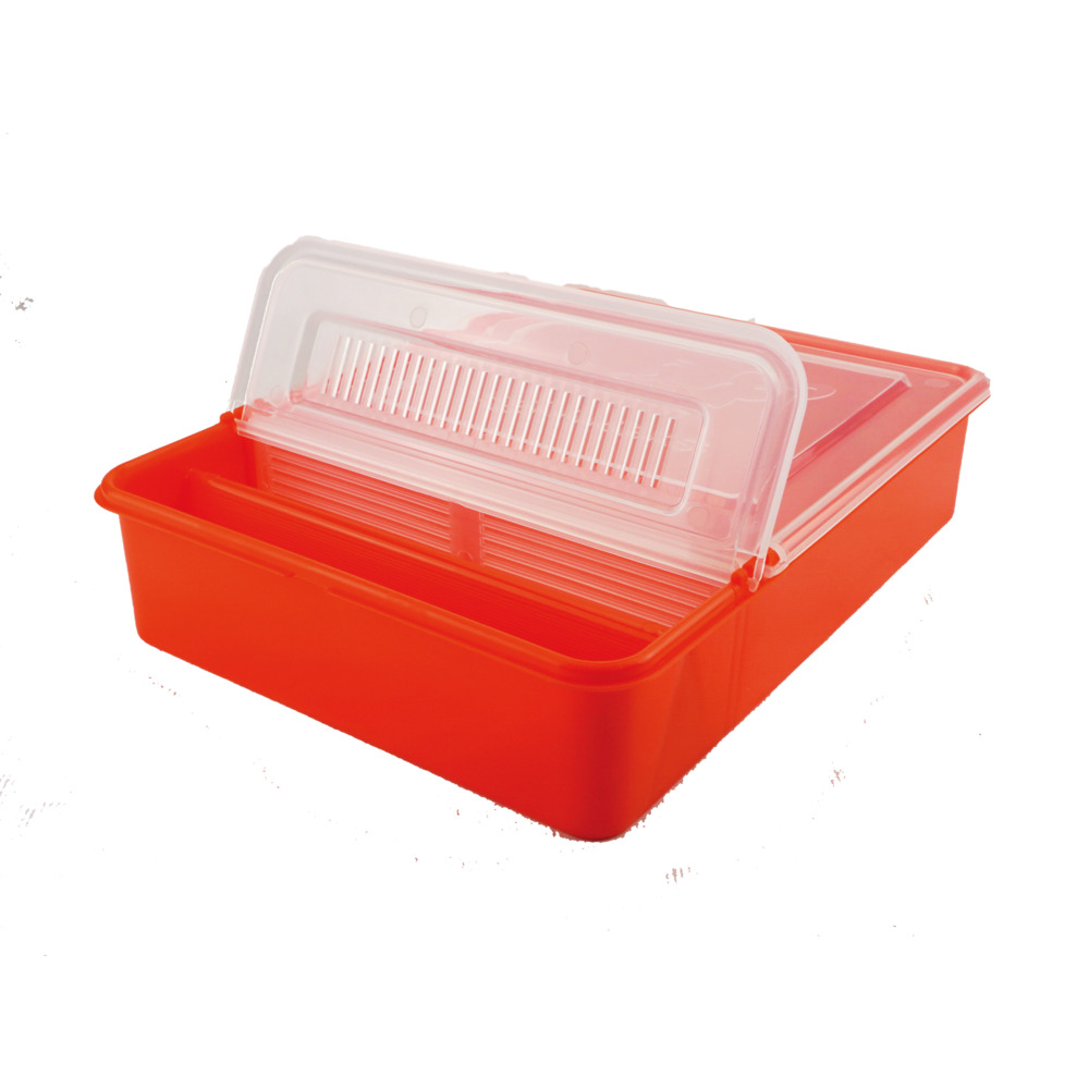 - Abmessungen (L x B x H) 26 x 20 x 6cm bei 1,5 Liter und 24 x 14 x 5,5cm bei 0,8 Liter