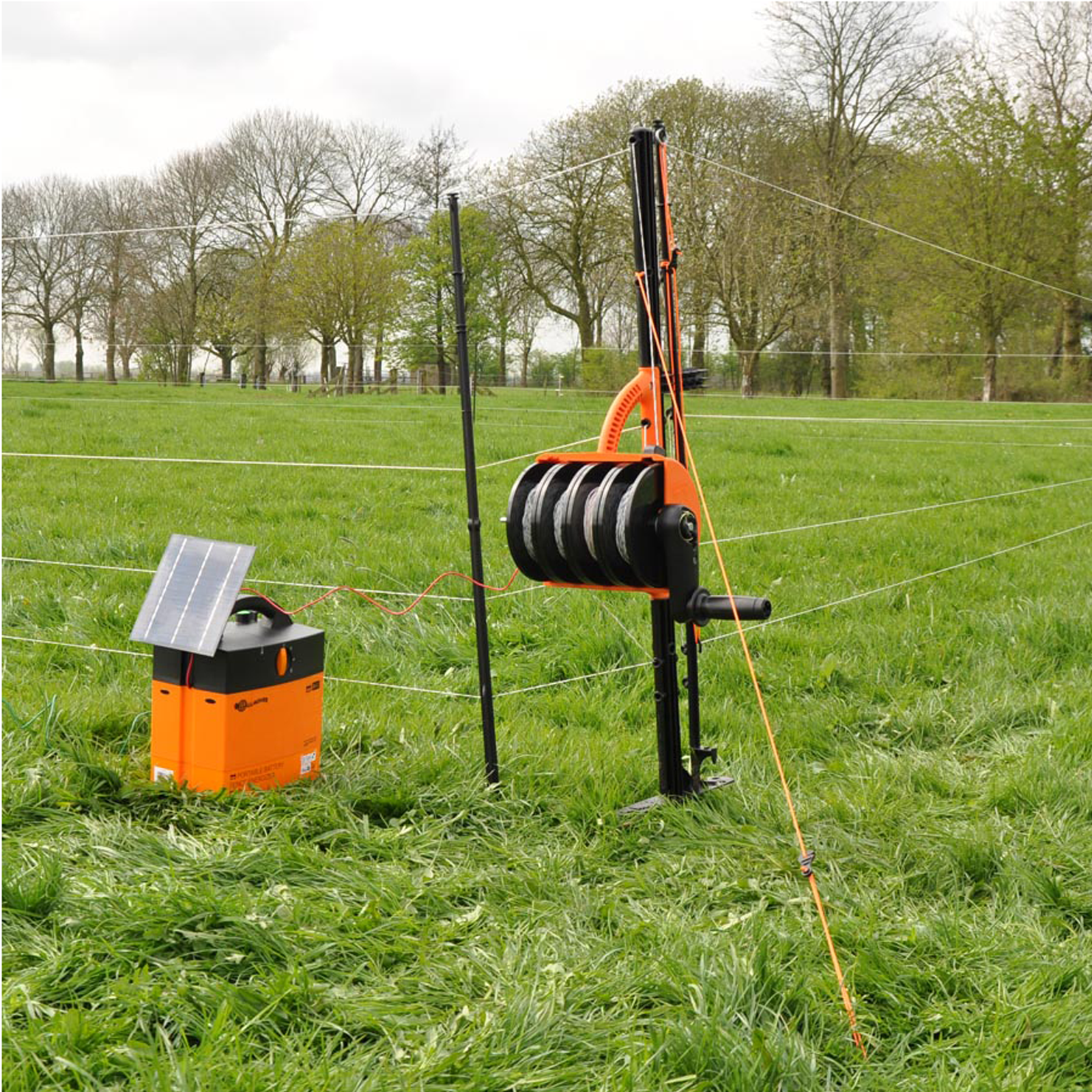 Mobilzaun-Komplettsystem 100 m. Der SmartFence V2 ist der ideale Zaun für Schafe, Ziegen und Kühe unddie perfekte Alternative für ein herkömmliches Zaunnetz. Pfähle, Haspeln und Drähte sind in einem System kombiniert. Garantierte Stromversorgung dank ausgezeichneter Leitfähigkeit über Turbostromleiter. Mit dem SmartFence sorgen Sie selbst für eine mobile Umzäunung von höchstens 100 Metern Länge. Dank flexibel einsetzbarer Pfähle kann der Zaun in jeder gewünschten Form aufgestellt werden. Der Smartfence besteht aus 10 Pfählen und 4 Drähten. Die Drähte sind höhenverstellbar. Das System ist sehr einfach und innerhalb kürzester Zeit auf- und wieder abzubauen. Es ist handlich mitzunehmen und zu verstauen. Der SmartFence verfügt über einen verstärkten Fuß für optimale Standfestigkeit im Boden. Möglichkeit zur Verbindung mehrerer Smart Fences.Höhe der Litzen: 15, 30, 50, 90 cmIdeal für eine schnelle Abteilung der Weide oder einen behelfsmäßigen Zaun
