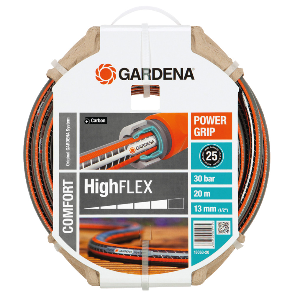 Der GARDENA Comfort HighFLEX Schlauch mit Power Grip Profil bietet eine optimale Verbindung von Schlauchverbinder und Schlauch. Beide greifen dank neuartiger Technik wie Zahnräder ineinander. Der Schlauch ist druckfest und noch formstabiler als der FLEX Schlauch, in der Anwendung gleichzeitig aber auch flexibel. Dies sind die besten Voraussetzungen für einen komfortablen und vielseitigen Einsatz im Garten. Bei Bedarf können Sie ihn mit den Original GARDENA Systemteilen und Anschlussgeräten systematisch ergänzen. Er ist frei von giftigen Weichmachern (Phthalaten) und Schwermetallen und selbstverständlich UV-beständig.Dieses Schlauch-Profil bietet eine optimale Haltekraft und somit eine sichere Verbindung zwischen Schlauch und Schlauchstück.GARDENA Schläuche sind äußerst druckbeständig und behalten ihre Form.Dieser Schlauch aus Qualitätsgewebe mit hoher Wandstärke ist bis zu einem Druck von 30 bar geeignet.