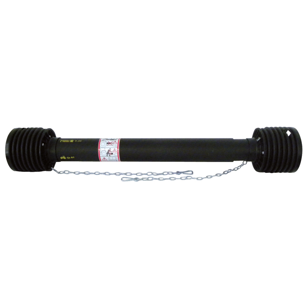 Der Basistrichter besteht aus Hart-PVC und verleiht dem Schutz die notwendige Festigkeit und Widerstandsfähigkeit. Die schiebbaren Schutzrohre sind aus hochfestem Spritzguß-Kunststoff hergestellt. Die Haltekette verhindert, dass sich der Unfallschutz zusammen mit der Gelenkwelle dreht. (Länge wird von Kreuzmitte zu Kreuzmitte gemessen).