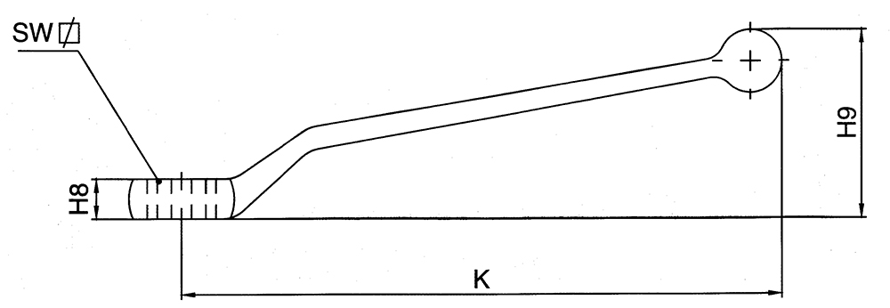 Gekröpfter Griff aus Zinkdruckguss in Naturfarbe. Z.B., für Kugelhähne oder Umschaltventile mit Vierkant-Wellenansatz.