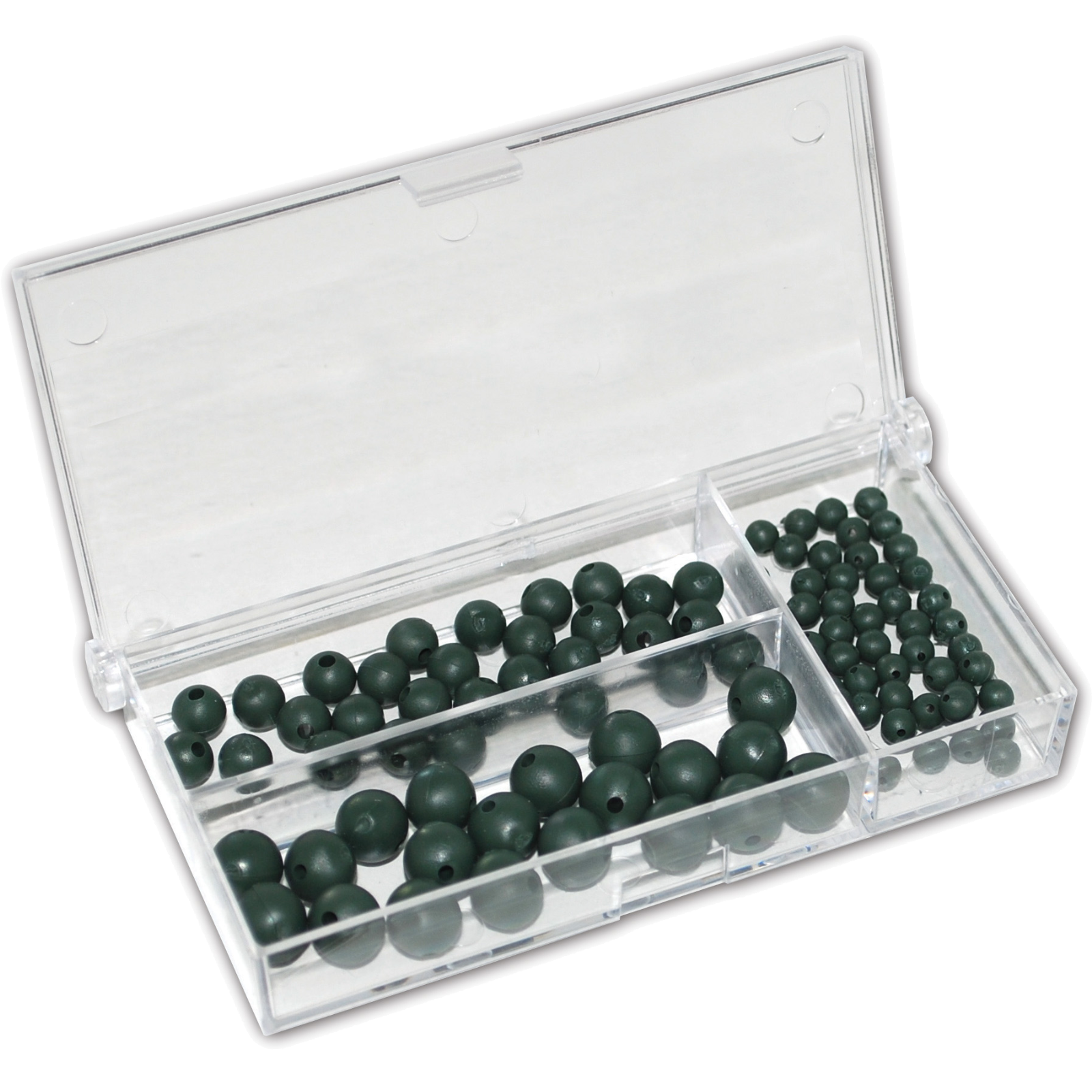 Das Gummi-Perlen Sortiment Premium mit 100 Stück ist ein praktisches Zubehör für alle, die Wert auf Schutz, Ordnung und Vielseitigkeit beim Angeln legen.Die Perlen bestehen aus hochwertigem, weichem Gummimaterial, das zuverlässig vor Knoten- und Wirbelschäden schützt – besonders bei starken Würfen oder im Drill.Ideal einsetzbar als Puffer zwischen Blei und Knoten, zum Schutz empfindlicher Knotenverbindungen oder zur Abstandshaltung bei verschiedenen Montagen.Auch bei D-Rig- oder Vorfachsystemen sorgen die Gummiperlen für mehr Haltbarkeit und Stabilität.Das Set enthält verschiedene Größen, damit du deine Montage optimal anpassen kannst – ganz gleich, ob beim Friedfischangeln, Raubfischangeln oder Karpfenfischen.
