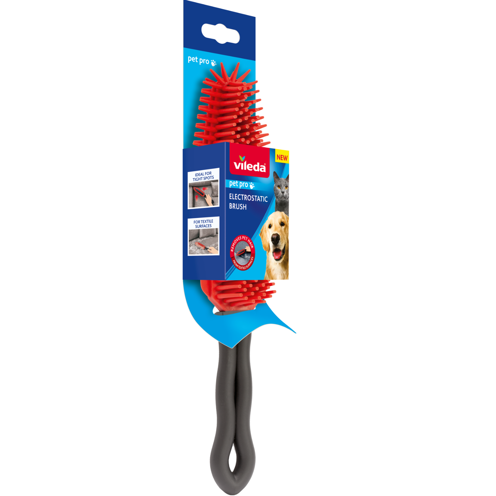Mit der Vileda Pet Pro elektrostatischen Bürste lassen sich Tierhaare von weichen Oberflächen schnell, einfach und schonend entfernen.Aufgrund der elektrostatischen Wirkung ziehen die sanften Gummiborsten mühelos Tierhaare von sämtlichen weichen Oberflächen, wie Teppichen und selbst schwer erreichbaren Stellen,an - ideal auch für Autositze. Nach der Verwendung lässt sich die Elektrostatische Bürste problemlos unter dem Wasserhahn abspülen, wodurch sie stets wiederverwendet werden kann.Die Vileda Pet Pro Elektrostatische Bürste überzeugt nicht nur durch ihre effektive Leistung, sondern ist auch eine nachhaltige und langlebige Wahl.Dank ihrer robusten Borsten reduziert sie Abfall im Haushalt und hinterlässt textile Oberflächen makellos sauber.
