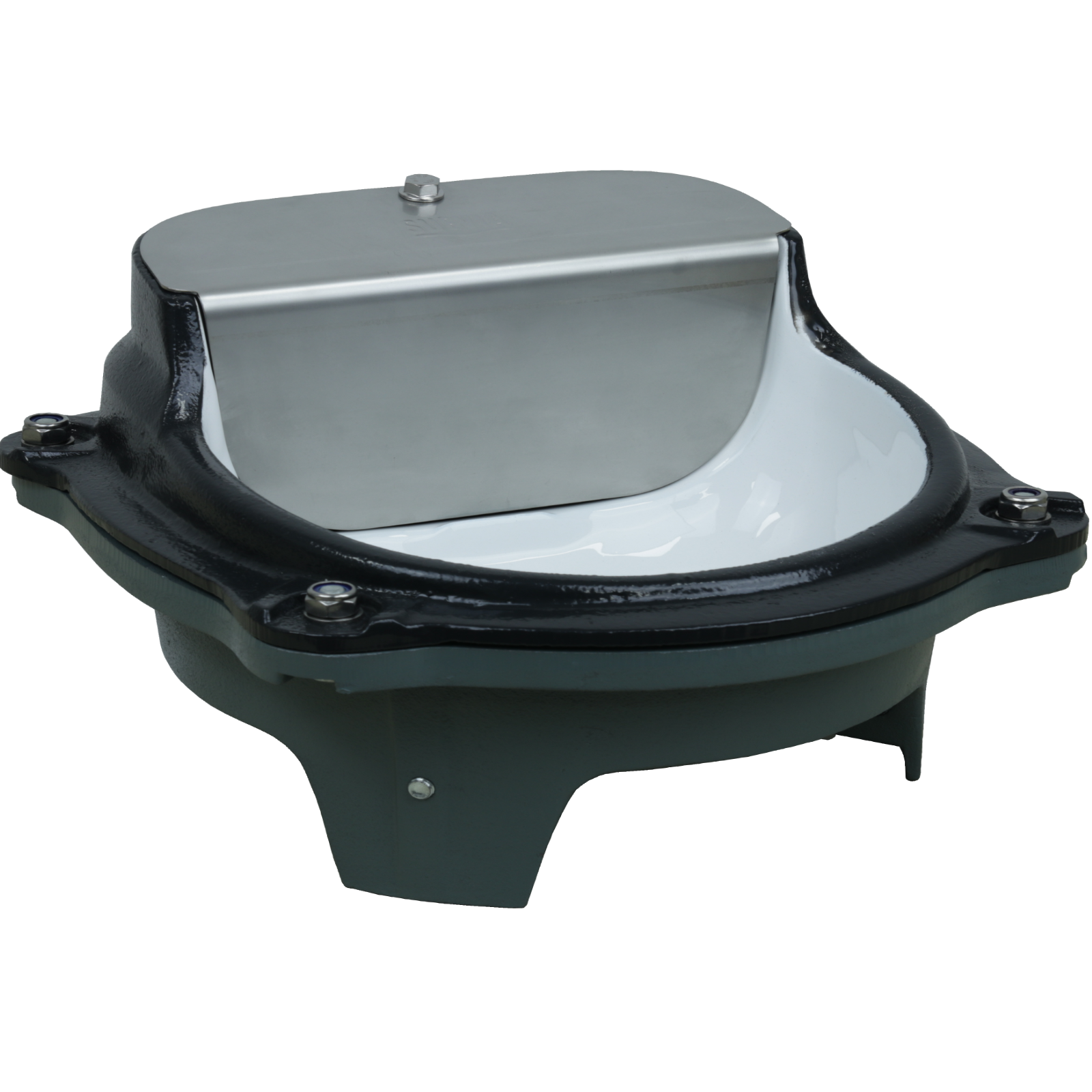 - Schale aus Gusseisen, innen weiß emailliert