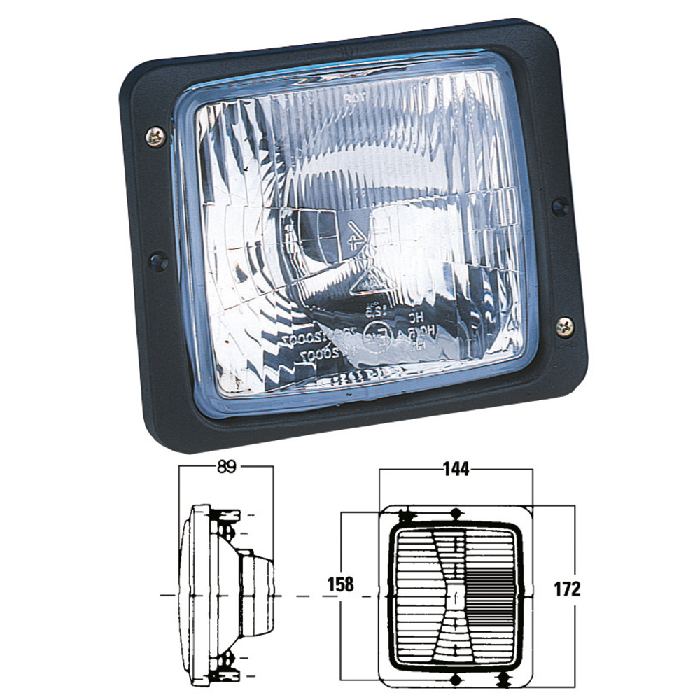 Austauschbar mit dem baugleichen Modellen von Niox, Cobo, Bosch und Hella. Verwendung an: Fendt, Steyr Traktoren Serie 80, Liebherr Straßenwalzen, Reform Allzweck LKW, IHC, und diverse andere Nutzfahrzeuge. H4 - 12/24V,Abmessungen: 144x172x89mm