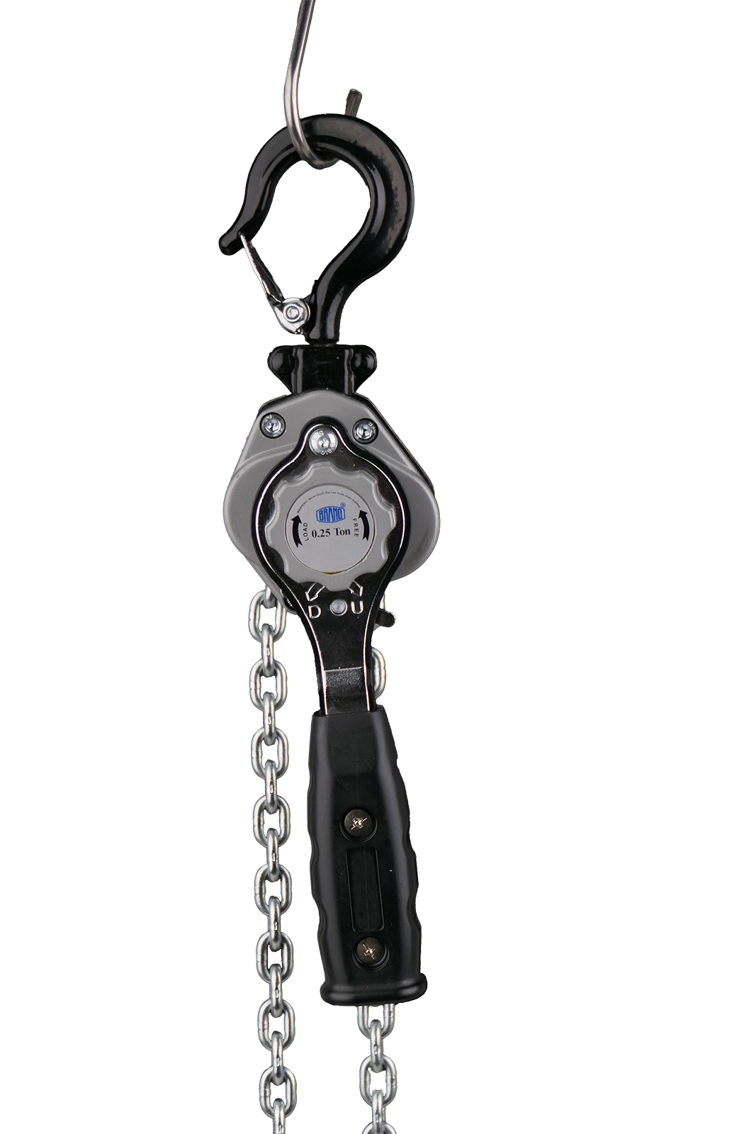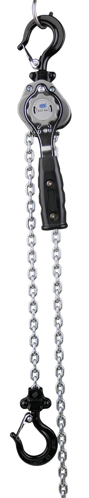 Robuster Handhebelzug mit einer maximalen Tragkraft von 250kg und einer Hubhöhe von 1,5m. Durch sein geringes Gewicht und die kompakte Bauweise bietet der Kettenzug einen vielseitigen Einsatzbereich für Hebe- und Zugaufgaben. Der Hebelzug ist perfekt für den Einsatz in Werkstätten, auf Baustellen und in engen Arbeitsbereichen, wo eine sichere Lastaufnahme gefordert ist.Der Hebelzug überzeugt mit robusten Lasthaken, einer in Europa gefertigten Lastkette und einer doppelten Verriegelung für mehr Sicherheit. Die Lastdruckbremse wird automatisch aktiviert sobald eine Last an den Haken aufgenommen wird.Mit dem Umschalthebel am Handhebel können sie 3 Arbeitsstellungen schalten:U - LasthebenD - Last senkenN - Mittelstellung - Kettenfreilauf, schnelles Durchziehen der Kette mit dem Handrad oder von Hand aus möglich.Durch den Kettenfreilauf ist der Kettenzug einfach und schnell auf die gewünschte Arbeitsposition einstellbar. Die Lasthaken sind drehbar um eine möglichst flexible Aufhängung an den Befestigungspunkten zu ermöglichen. Durch das feinverzahnte Getriebe ist nur eine geringe Handhebelkraft von 206N erforderlich.Die Lieferung erfolgt in einer praktischen Tasche für die Aufbewahrung und den Transport.