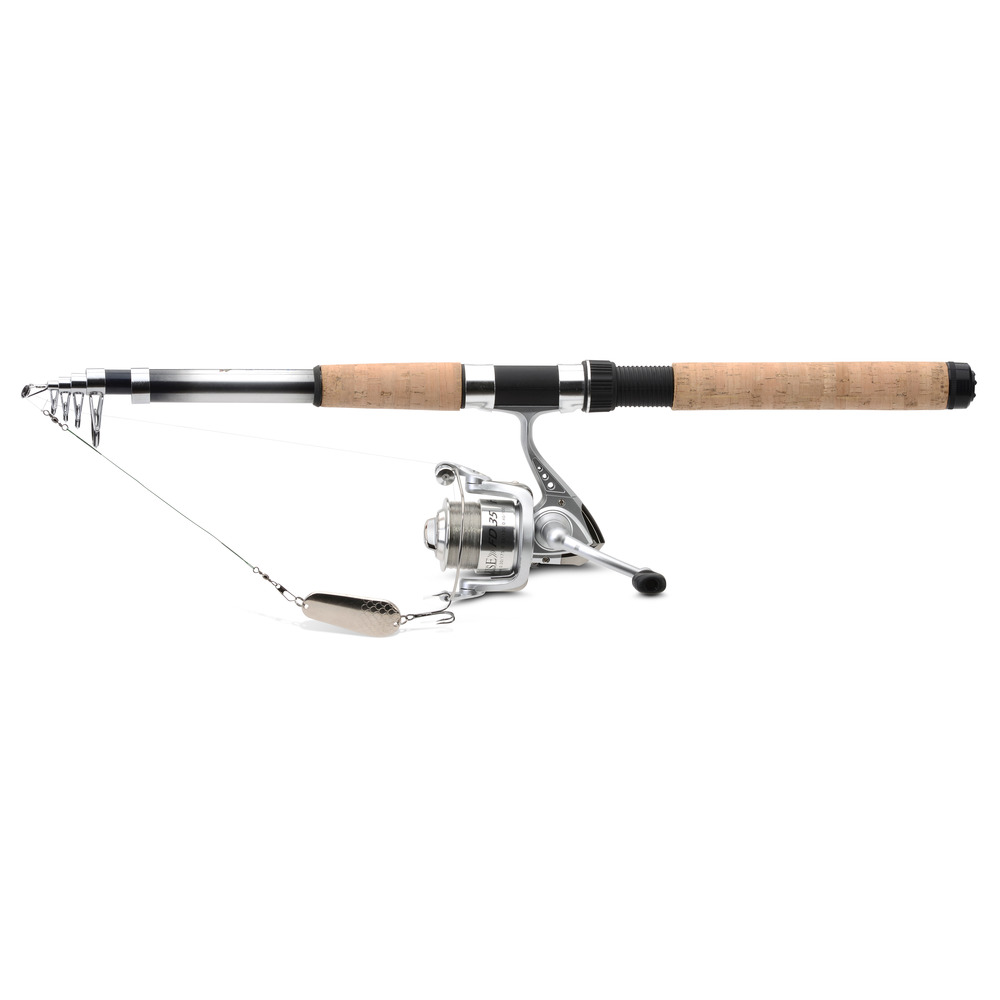 • Inkl. Zange, Blinker 32 g, Wirbel und Tasche