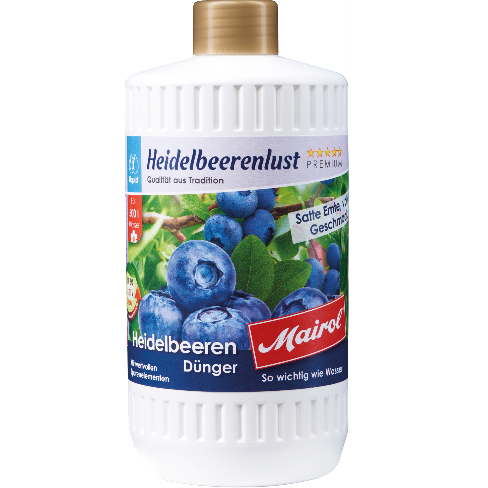 Der mineralische Heidelbeeren-Dünger von Mairol ist ein spezieller Flüssigdünger für Heidelbeeren und Preiselbeeren.Der Heidelbeeren-Dünger wirkt sofort und sorgt für eine reiche Ernte.Heidelbeeren benötigen einen sauren Boden. Der pH-Wert von Mairol Heidelbeerenlust ist auf den Säuregehalt der Erde abgestimmt.Der Dünger eignet sich daher für Heidelbeeren, Preiselbeeren und alle anderen Beerensorten, die einen sauren Boden benötigen.Mairol Heidelbeerenlust macht die Pflanzen kräftig und widerstandsfähig.Die Pflanzenkraft ist sehr ergiebig. Ein Liter Heidelbeerenlust ergeben 500 Liter Gießwasser.NPK-Dünger 3 + 2 + 3:Stickstoff N: Als Energielieferant jeder Pflanze maßgebend für das Pflanzenwachstum.Phosphor P2O5: Für üppige Blüten- und Farbenpracht, zur Festigung des Gewebes sowie zur Förderung von Wurzelwachstum und Keimung.Kalium K2O: Für die gesamte Festigkeit und somit auch die Widerstandsfähigkeit der Pflanze verantwortlich; reguliert den Wasserhaushalt und schützt die Zellen vor Kälte.Mairol Turbo-Aktiv-Effekt: Ausgesuchte chelatisierte Spurenelemente stehen der Pflanze unmittelbar zur Verfügung.Hohe Ergiebigkeit:1 Liter Heidelbeeren-Dünger reicht für 500 Liter Gießwasser.Zur Blattdüngung geeignet.Hochwertig ausgewählte Rohstoffe.Ideale Zusammensetzung für eine reiche Heidelbeer-Ernte.Anwendung, Düngeempfehlung und Dosierempfehlung für Heidelbeer-DüngerHeidelbeer-Pflanzen erst ca. vier Wochen nach dem Pflanzen oder Umtopfen düngen. Heidelbeeren von April bis September zweimal wöchentlich düngen.Vor Gebrauch schütteln.2 ml Heidelbeeren-Dünger auf 1 Liter Gießwasser.In der Ruhephase keine Düngung.Sicherheitshinweise:PräventionP261 Einatmen von Staub / Rauch / Gas / Nebel / Dampf / Aerosol vermeiden.P262 Nicht in die Augen, auf die Haut oder auf die Kleidung gelangen lassen.