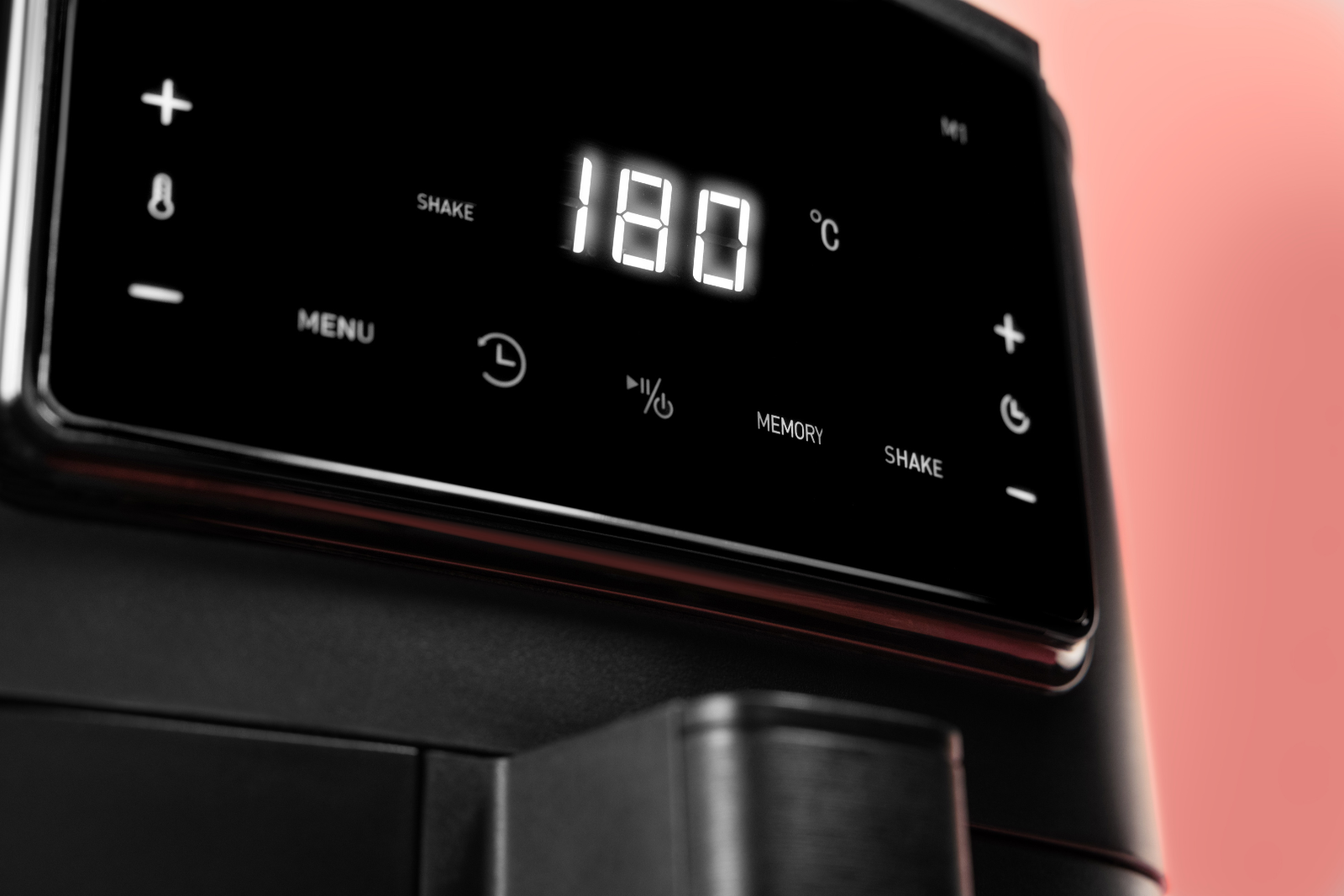 Single XXL – gesund, knusprig und extra viel Platz. Mit 7 Litern Volumen bietet die Black Line Single XXL viel Raum für Lieblingsgerichte – ideal für Familien, Meal-Prep oder großen Hunger. Ob knuspriges Gemüse, fettarmes Fleisch oder frische Brötchen: Die Heißluft-Technologie sorgt für gleichmäßige Bräunung – ganz ohne Öl. Dank kurzer Aufheizzeit sparen Sie Zeit im Alltag. Die Touch-Bedienung ist einfach und selbsterklärend. Praktisch: Die Shake-Reminder-Funktion erinnert automatisch ans Schütteln – für perfekte Ergebnisse. Die Reinigung geht leicht von der Hand: Alle herausnehmbaren Teile sind spülmaschinengeeignet, die Antihaftbeschichtung kommt ohne PTFE aus. Ideal für alle, die gesund und bequem kochen möchten. Frittierkorb mit riesigem Fassungsvermögen