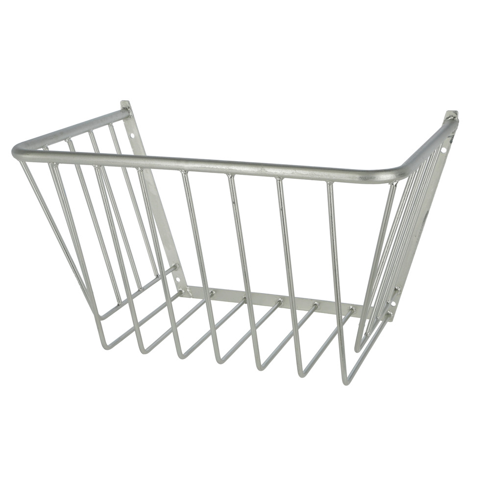 Verzinkte Heuraufe, in besonders stabiler Ausführung! Zur Wandbefestigung. Stabstärke: 10 mm, Stababstand: 96 mm. Maße (L x B x H): 75,3 x 47,5 x 46,5 cm