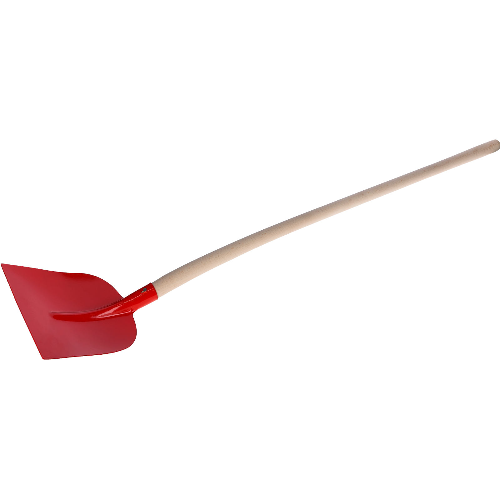 Aus Stahlblech, rot lackiert, Größe 2, Länge 27 cm, Breite 25 cm. Stielhalter 38 mm​. Mit Buchenstiel (montiert)