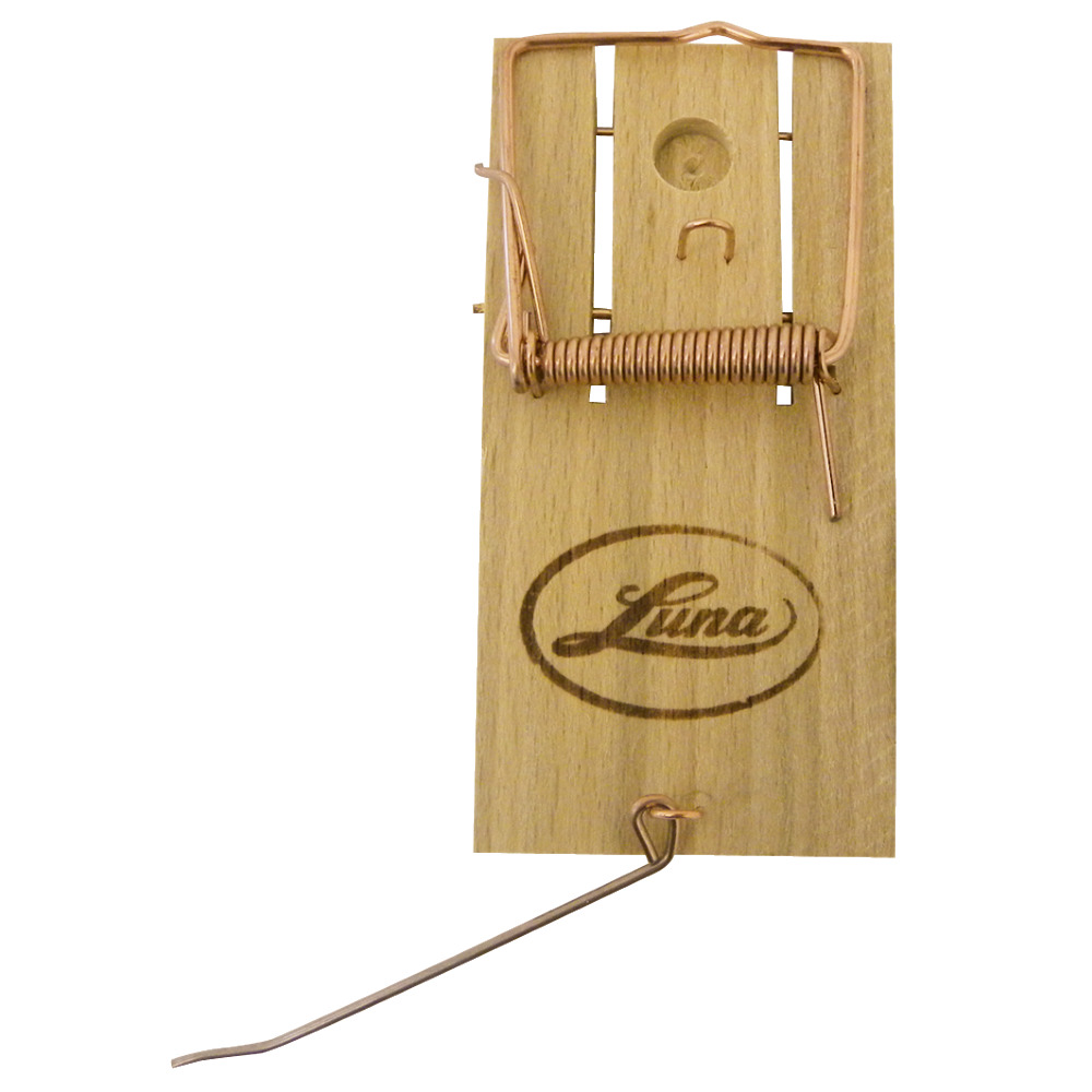 BxH 5 x 9,5 cm, klassische Mausefalle aus Buchenholz. Sicherer Fang durch Holzwippe, Köderhalter und kräftige Feder, mit starkem Schlagbügel.