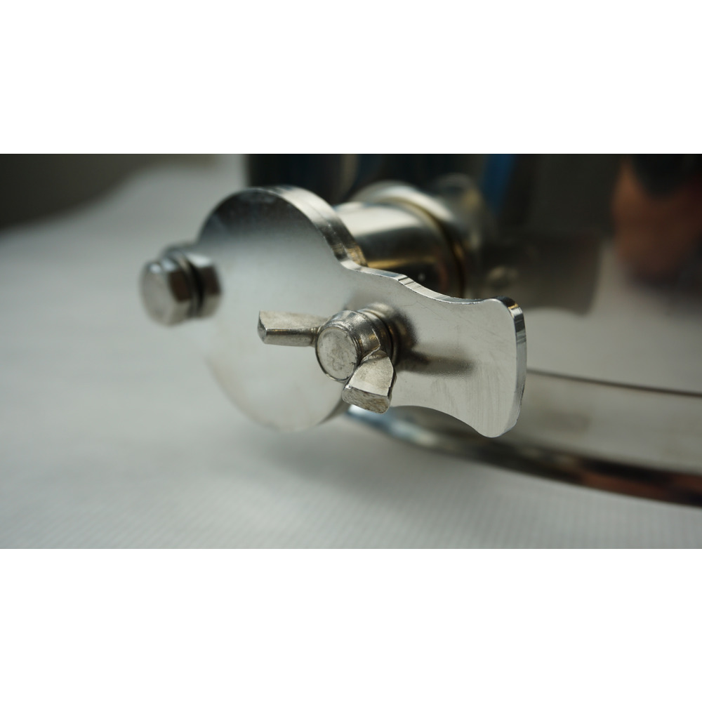 Honigabfülltopf mit Quetschhahn aus Edelstahl inkl. Auflagedeckel mit Dichtung.