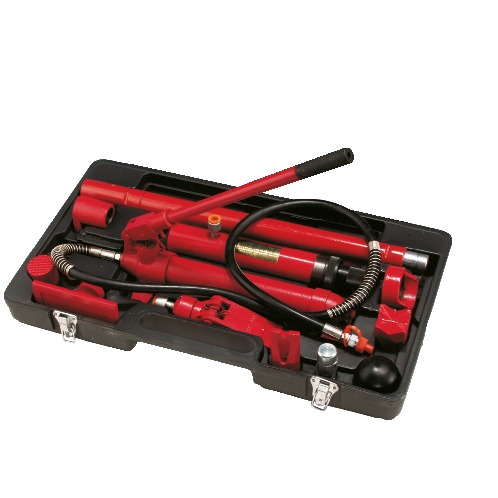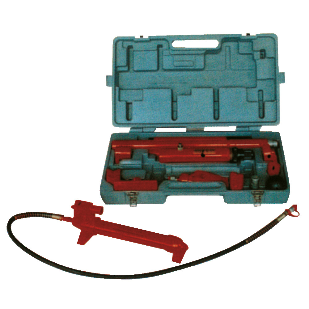 15-teiliger Werkzeugsatz mit Handpumpe und umfangreichem Zubehör. Gewicht 32 kg. Rascher Werkzeugwechsel durch Steckverbindung. In PVC-Tragekoffer.