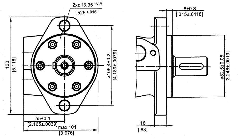 Anschlüsse R 1/2″, Wellen-Ø 25 mm, Gleitlagerung.