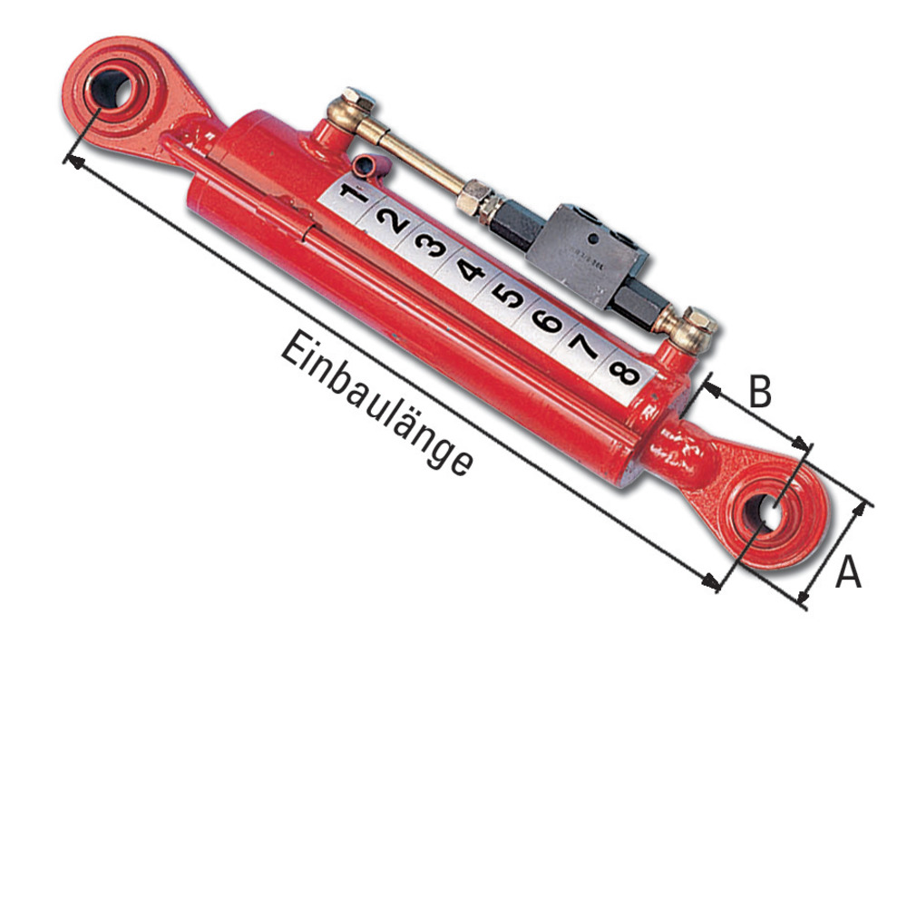 Durch das hydraulische entsperrbare Rückschlagventil wird eine selbsttätige Verstellung und ein Absinken unter Last verhindert. Lieferumfang: komplett mit Anschlussschläuchen inkl. Stecker und Staubschutz. Inklusive hydraulisch entsperrbarem Rückschlagventil (Sperrblock).Kolben-Ø K = 70mm, Kolbenstange-Ø S = 35mm, bis ca. 120PS, Druckkraft 6927kg, Zugkraft 5195kg.Die angeführten Längenangaben beziehen sich immer auf Bolzenmitte zu Bolzenmitte!