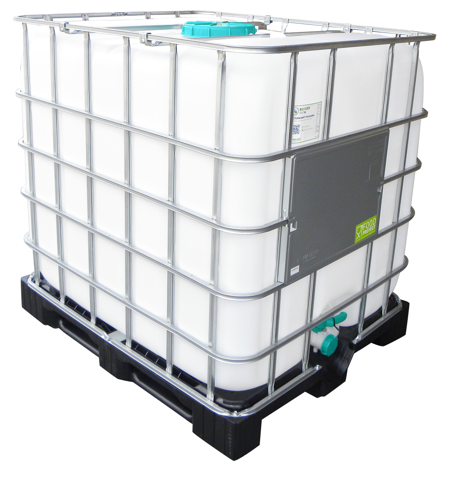 Der Innenbehälter ist von einem stabilen Rahmen aus verzinktem Stahlrohr umschlossen. Einfacher Transport und sicherer Stand durch Montage auf einer unterfahrbaren (z.B. Gabelhubwagen) Kunststoffpalette. Der Tank ist stapelbar, Lebensmittel geeignet und wird komplett mit Deckel DN 225 und 2 Zoll Auslaufhahn geliefert.