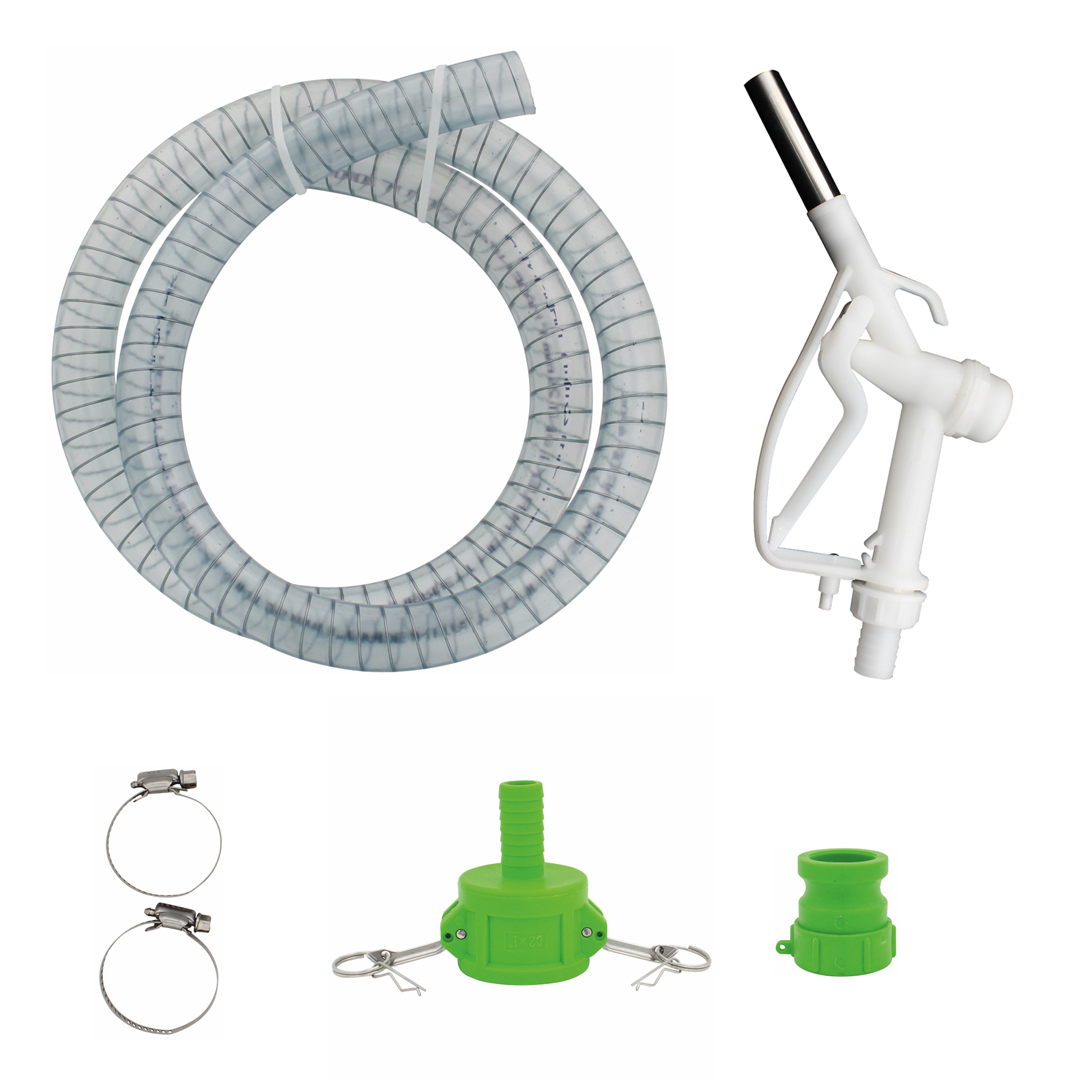 Zapfpistole inklusive Camlock Schnellverschlüssen und Schlauch, ideal zur problemlosen Entleerung eines IBC Tanks. Set bestehend aus: