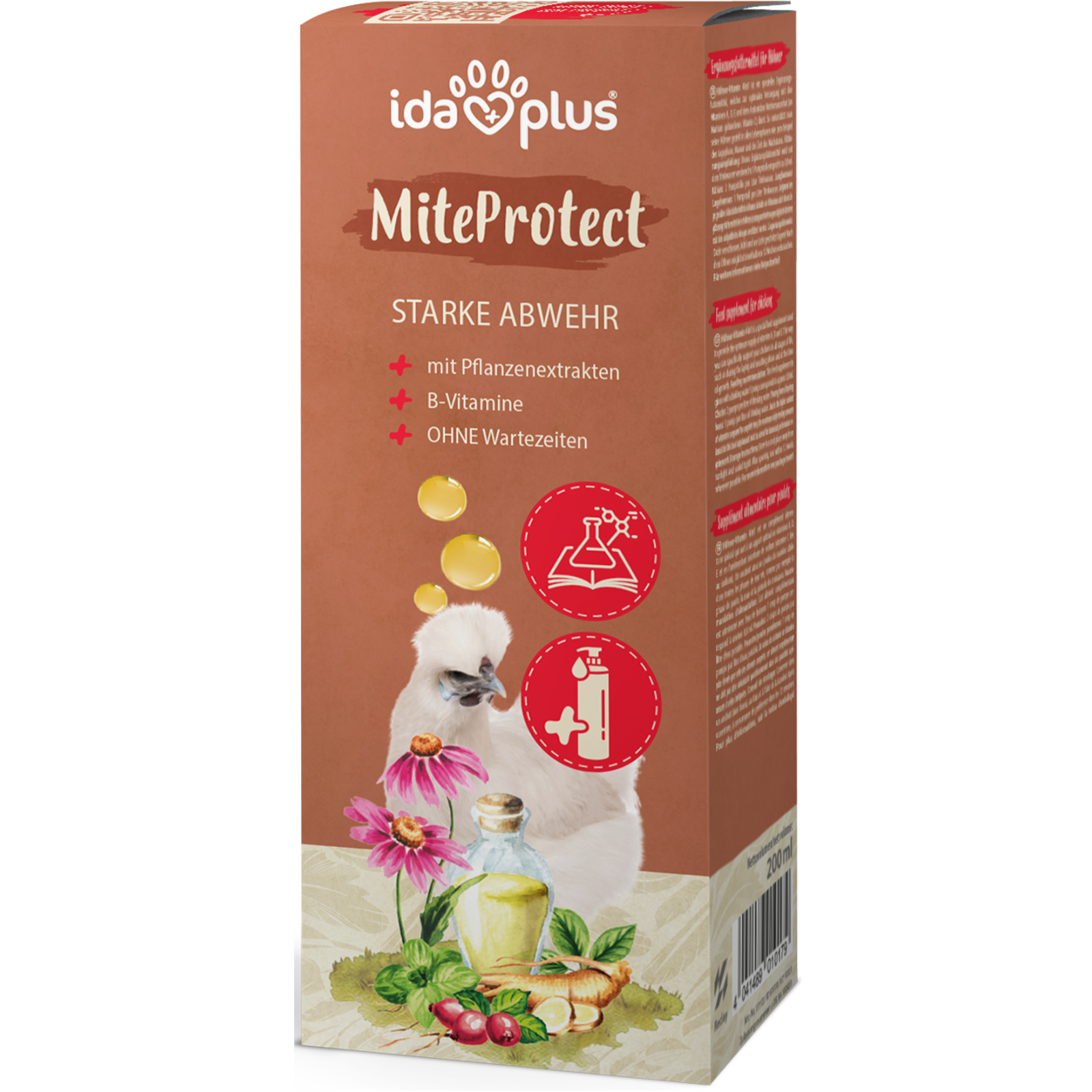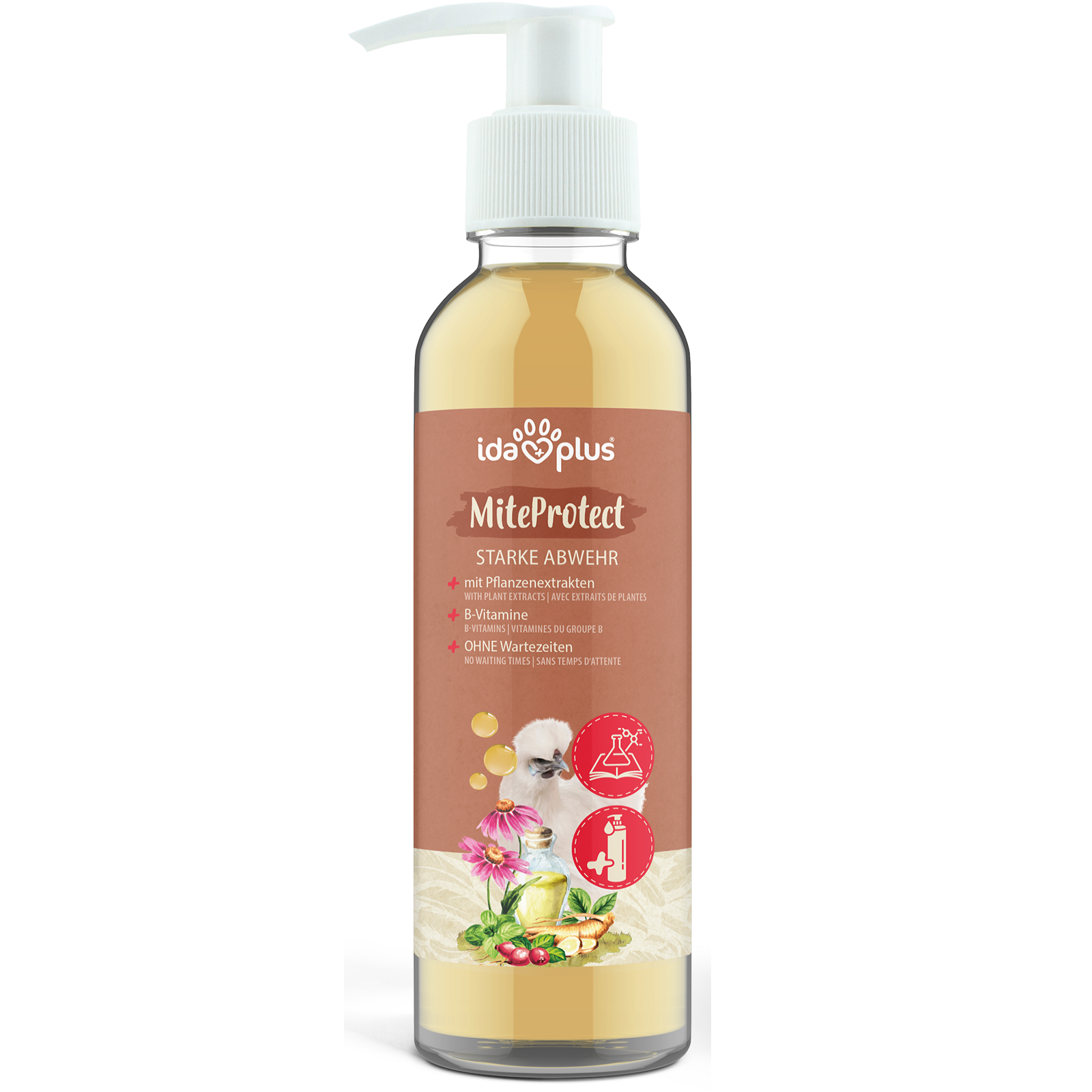 Die natürlichen Pflanzenauszüge in MiteProtect wirken appetitanregend und eignen sich optimal zur Unterstützung geschwächter Tiere, beispielsweise nach einem Befall mit Vogelmilben und anderen Ektoparasiten. Der gesteigerte Appetit stärkt die Tiere und wirkt sich auf ihr Wohlbefinden aus.